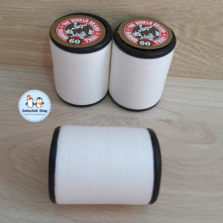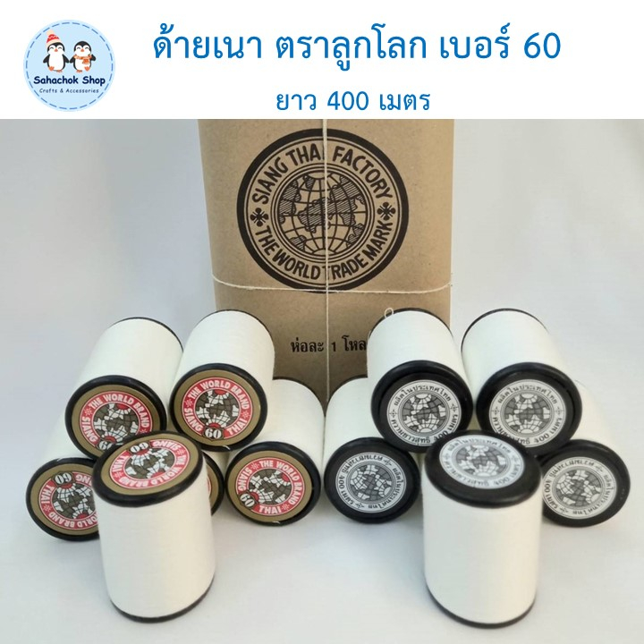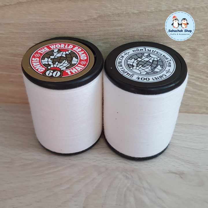1 ม้วน ด้ายเนา ด้ายสีขาว ด้ายเนาผ้า ตราลูกโลก เบอร์60 ความยาว 400 เมตร