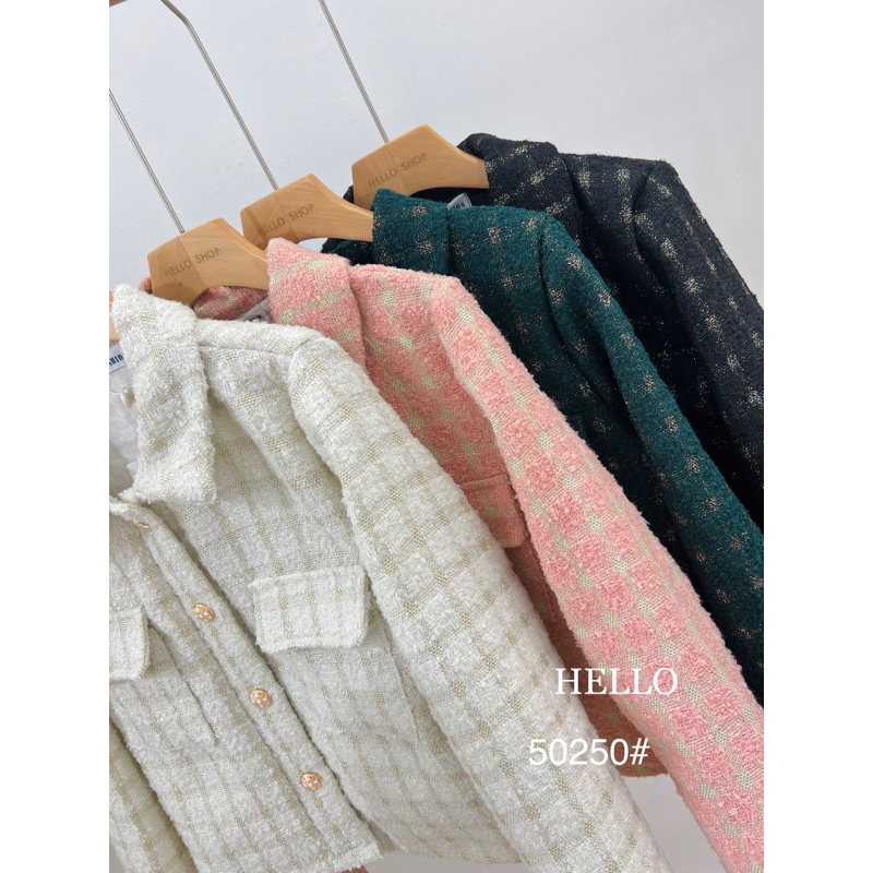 เสื้อคลุมแขนยาว ทวิต คอปก กระเป๋าหน้า กระดุมทองผ่าหน้า #H50250