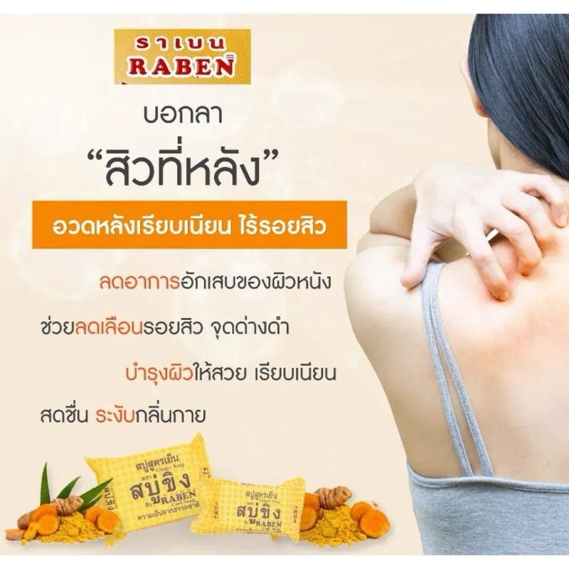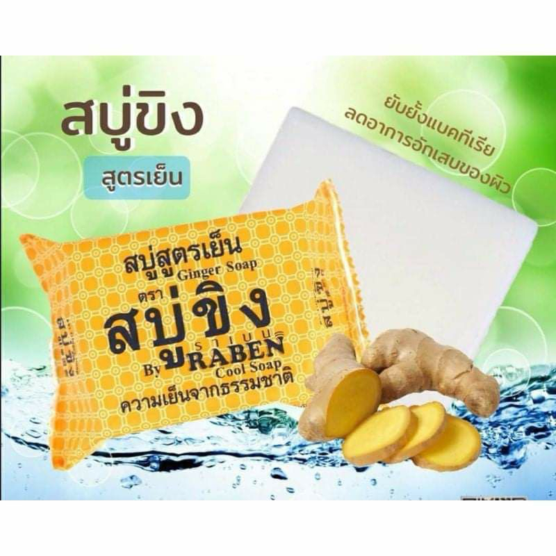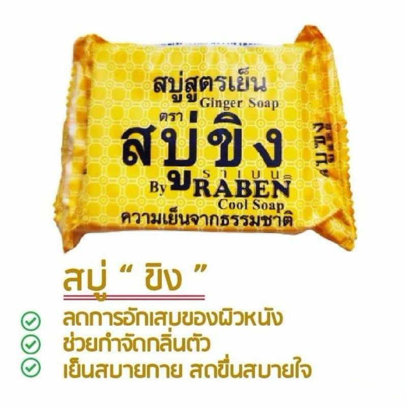 [ 6 ก้อน ]🧼🫚Raben🧼🫚ราเบนสบู่ขิง สูตรเย็น 130 กรัม Ginger Soap สบู่ราเบนขิง สูตรเย็น สบู่ ราเบน ขิง สิว