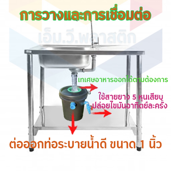 ถังดักไขมัน ใช้ในการจับไขมันหรือทำเป็นบ่อดักไขมัน รุ่นวางใต้ซิ้งค์ ขนาด 10 ลิตร
