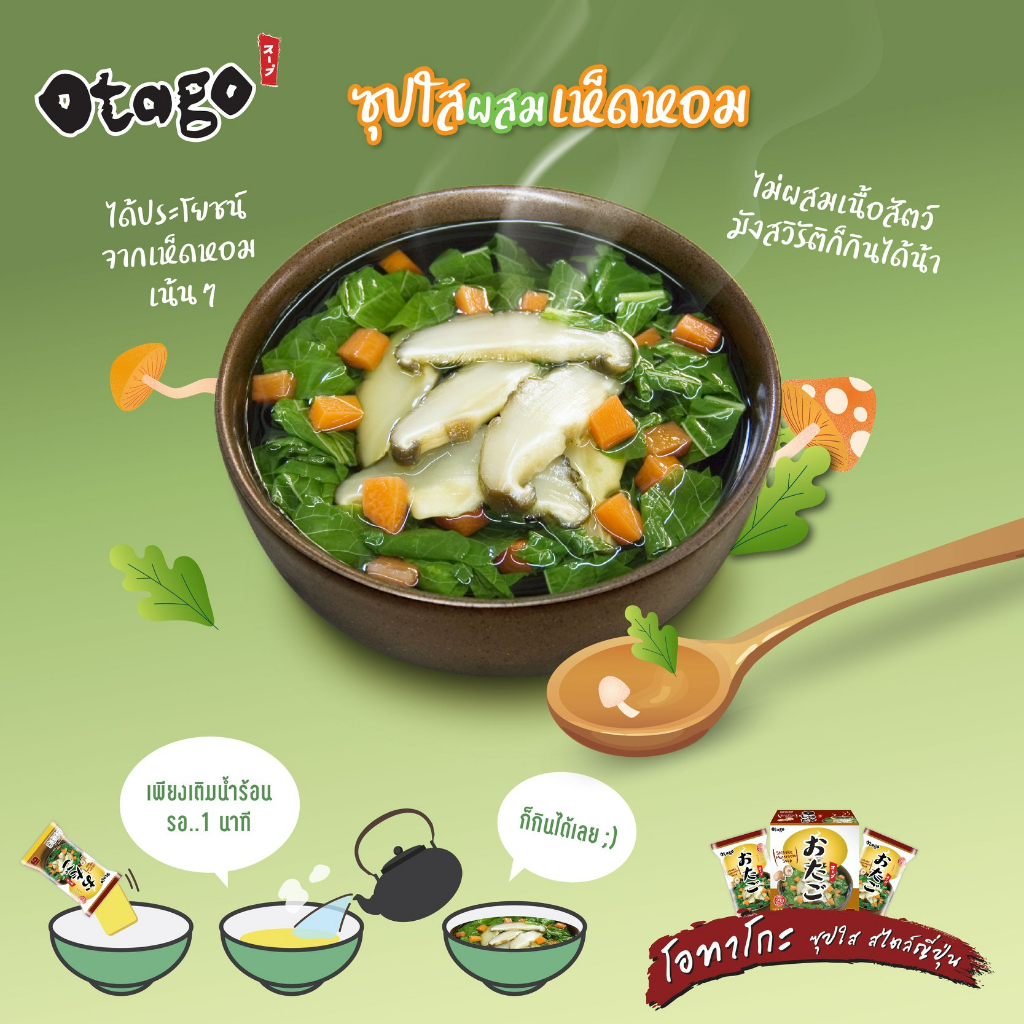 (ยกลัง) โอทาโกะ ซุปใสผสมเห็ดหอม 24 กรัม - 12 กล่อง / Otago Instant Shiitake Mushroom Soup 24 g. (12 Box)