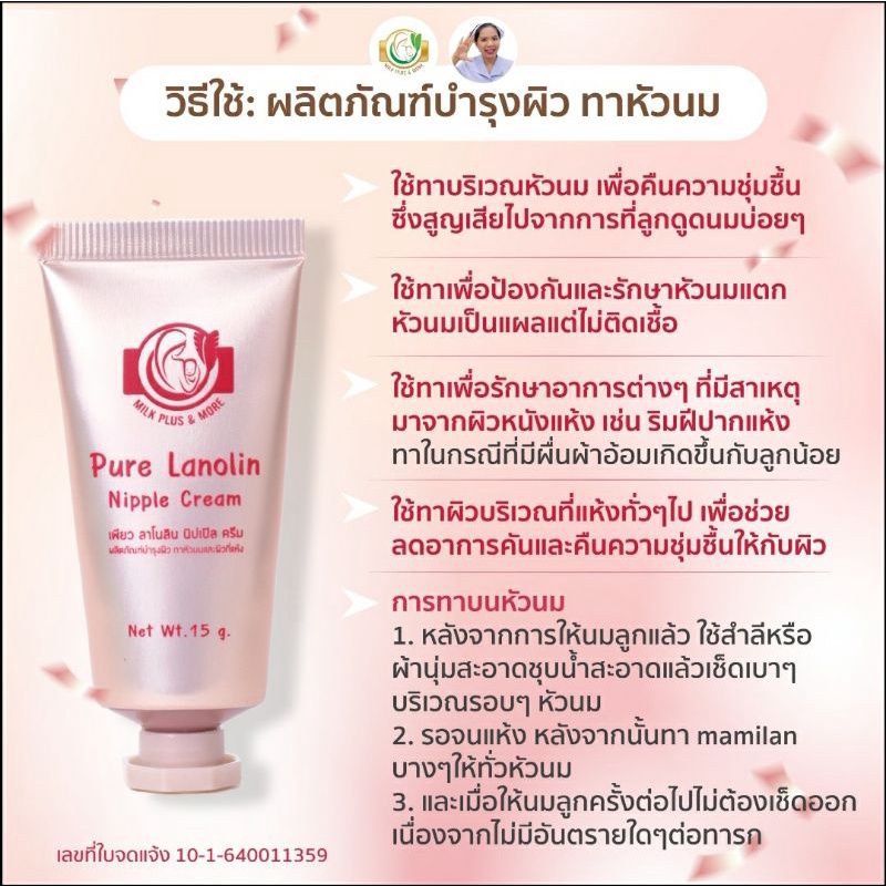Milk Plus & More Pure Lanolin - nipple cream 15g ครีมบำรุงผิว ทาหัวนมและผิวแห้ง