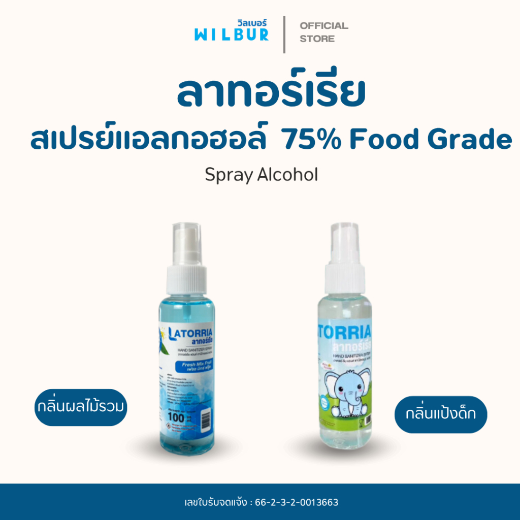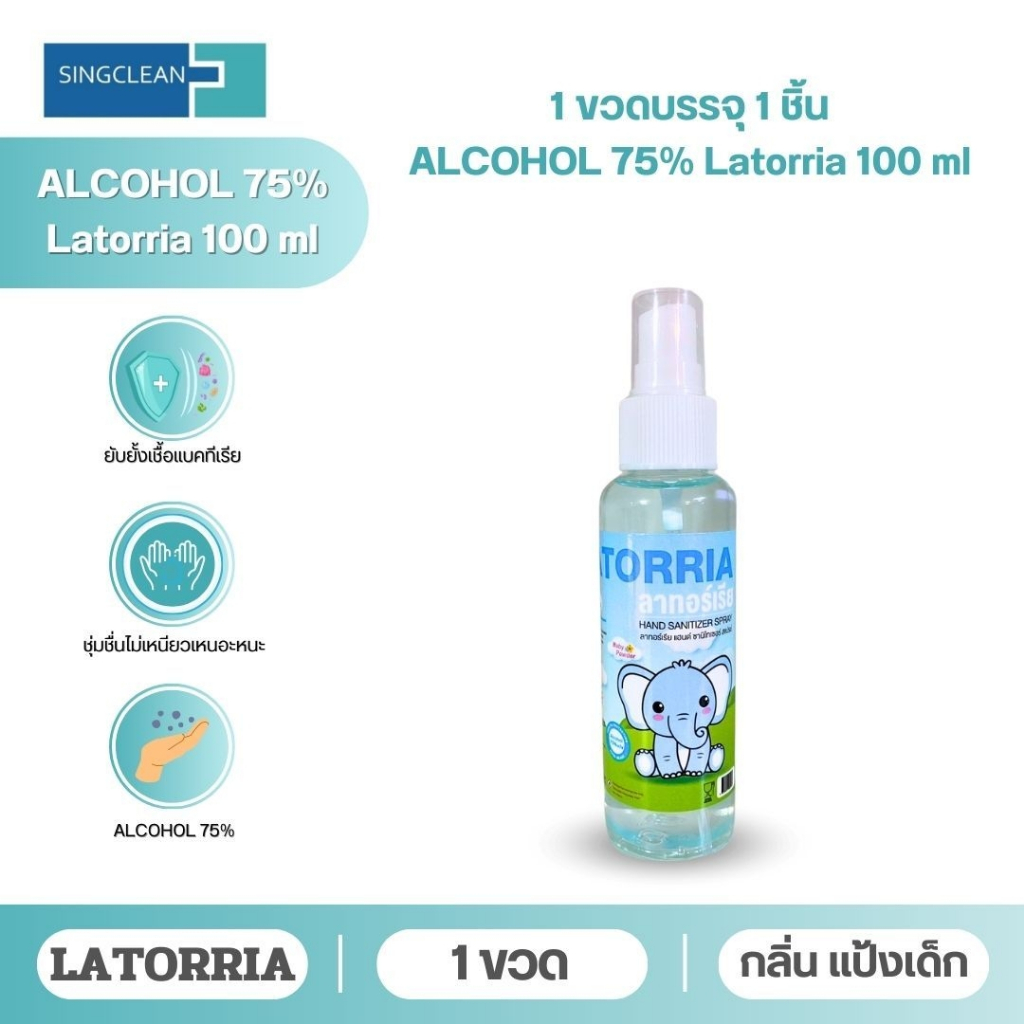 แอลกอฮอล์สเปรย์พกพา (Alcohol SPRAY) แบบน้ำ 75% 100มล. Latorria-ลาทอร์เรีย