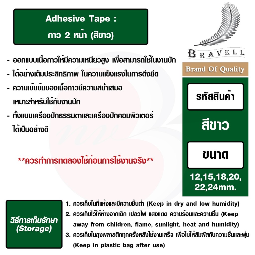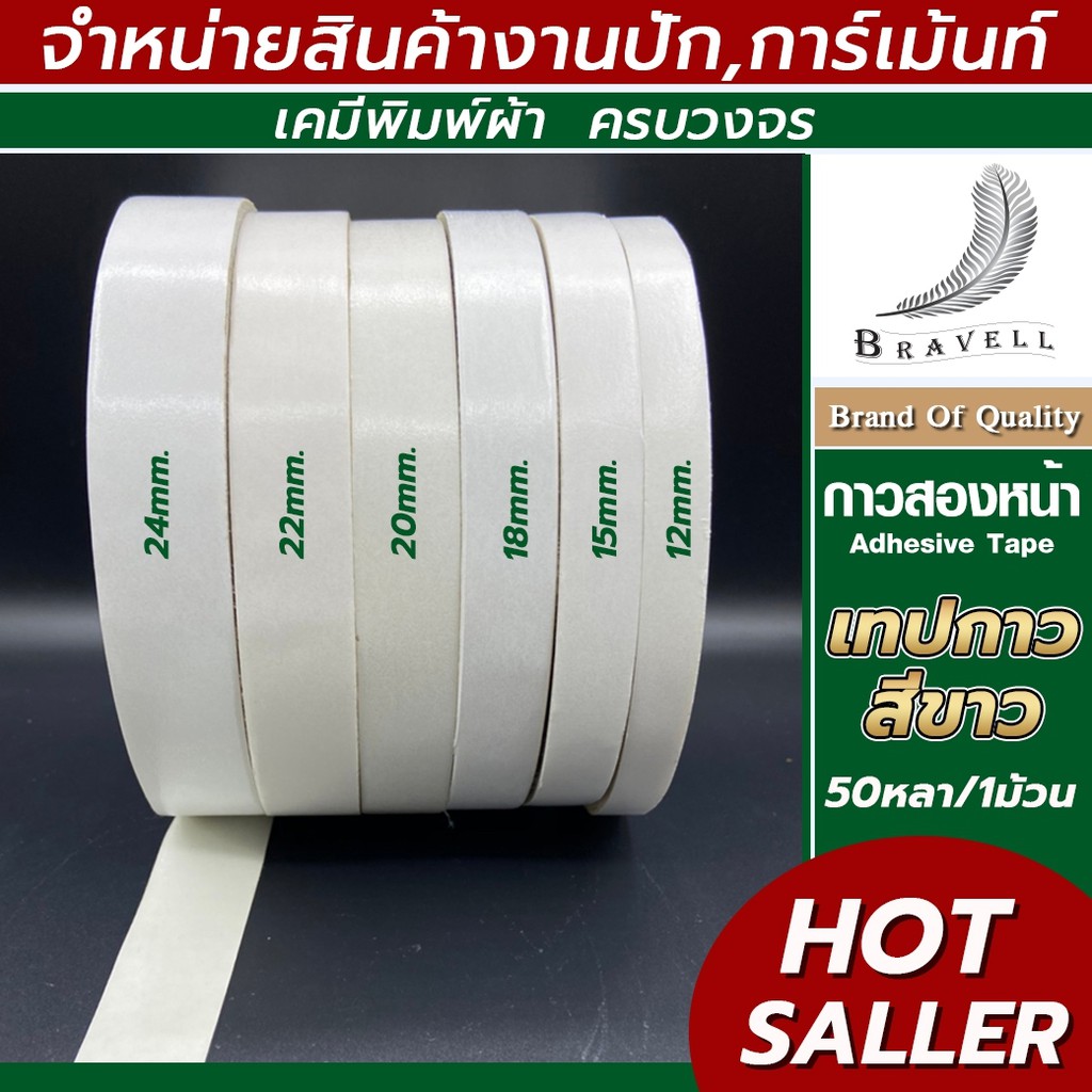 เทปกาวสองหน้า เหนียวพิเศษ ขนาด 12/15/18/20/22/24mm. (สีขาว) เทปกาวสองหน้า เหนียวพิเศษ กาว2หน้า
