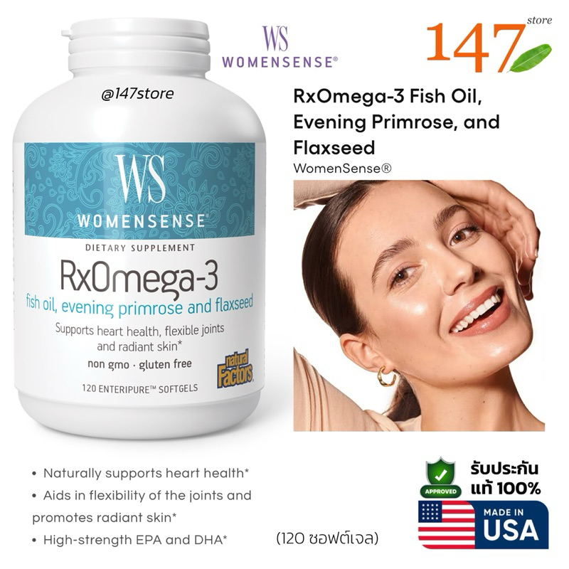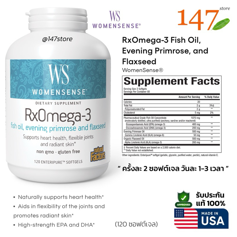 [แท้100%] Natural Factors WomenSense RxOmega-3 Fish Oil + Flaxseed + Evening Primrose โอเมก้า3 สำหรับผู้หญิง 120 ซอฟเจล