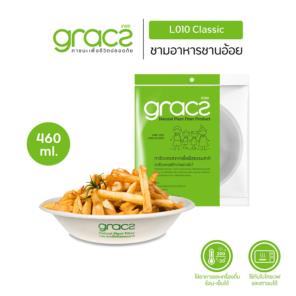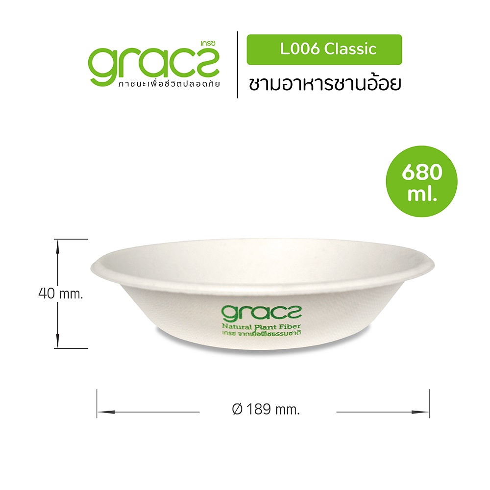 (แพ็ก 10 ชิ้น) GRACZ ชามอาหารทรงตื้น (เกรซ คลาสสิก) ชามกระดาษ ถ้วยกระดาษ ชานอ้อย เข้าไมโครเวฟได้