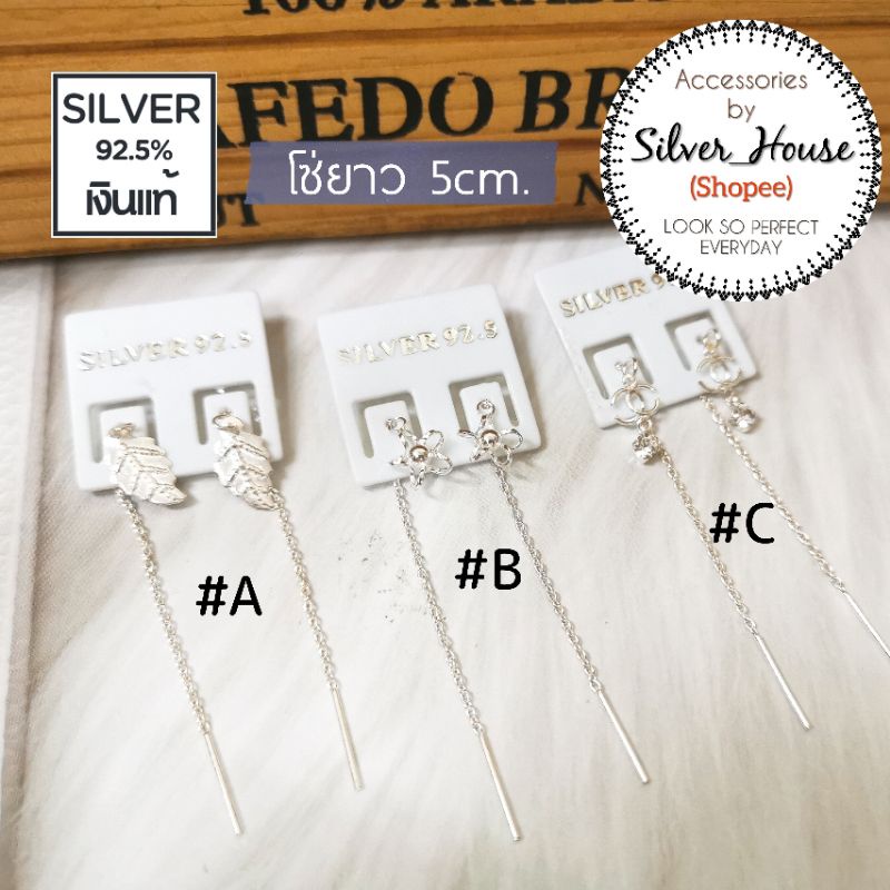 ต่างหูเงินแท้ 92.5% โซ่คล้องห้อยจี้ใบไม้/ ดอกไม้/ ccห้อยเพชร น่ารักมากๆ