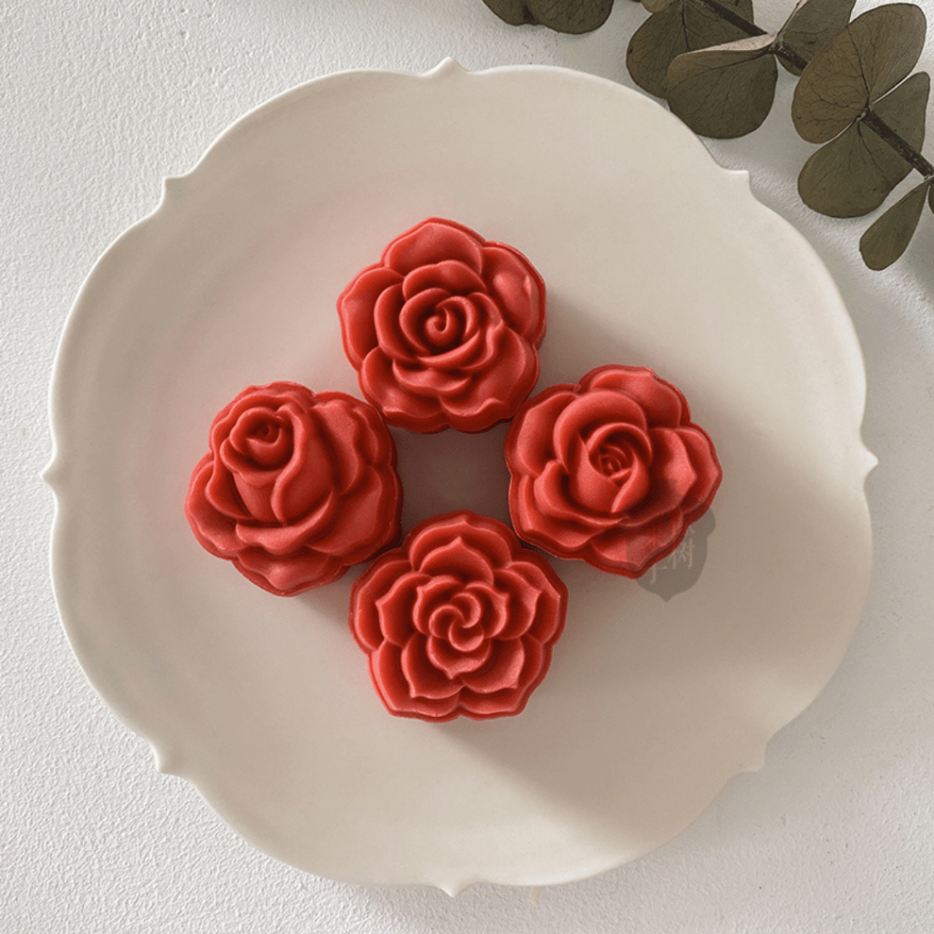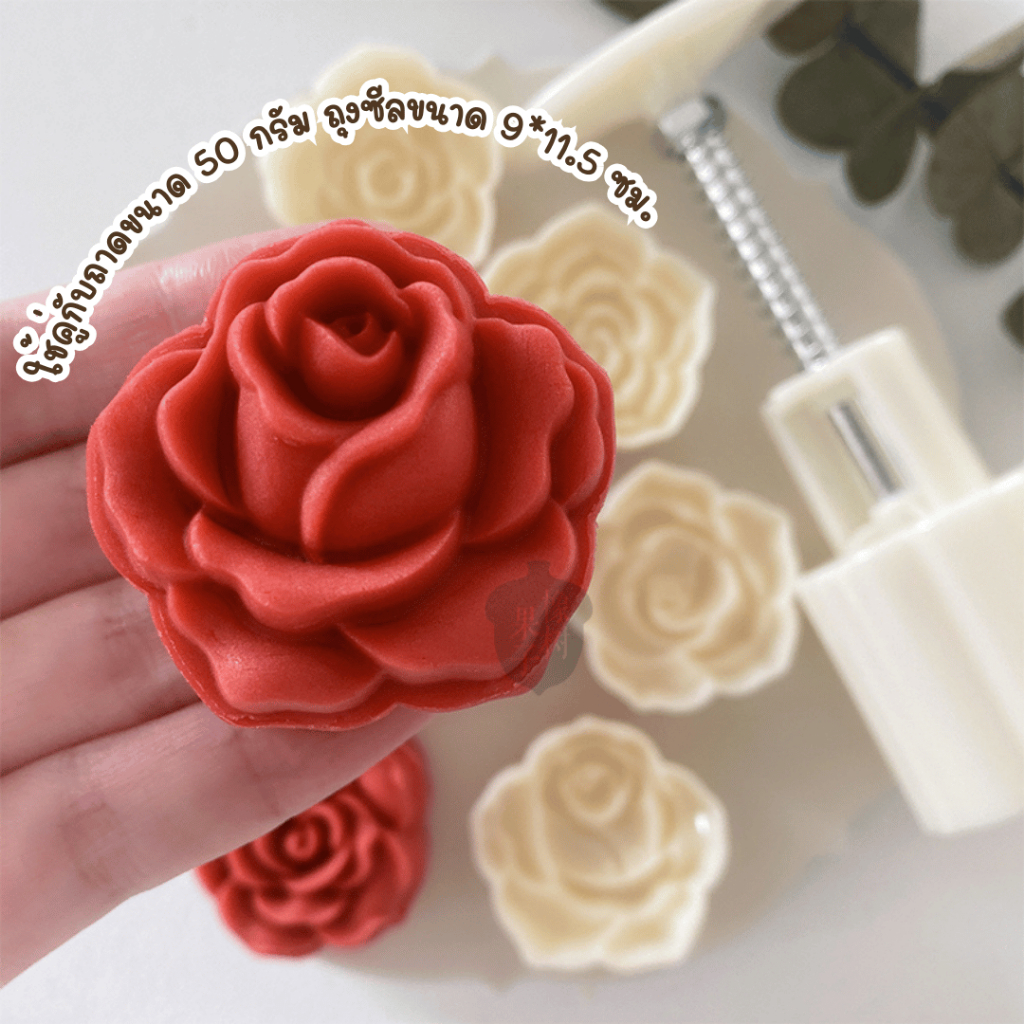 แม่พิมพ์กดขนมไหว้พระจันทร์ขนาด 20 กรัม และ 50 กรัม ลายกุหลาบ