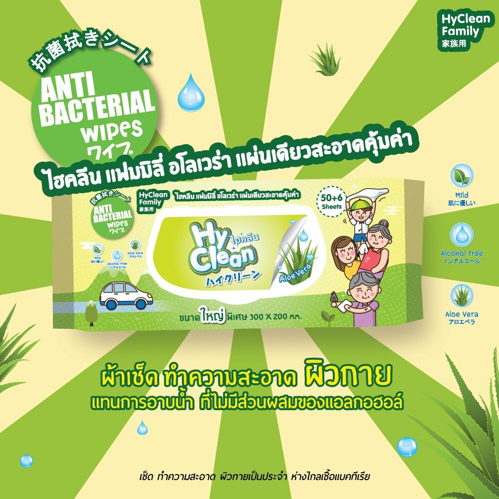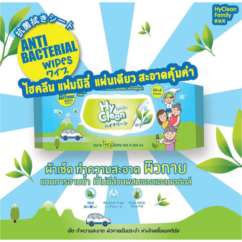 ทิชชู่เปียก Hyclean ไฮคลีน ผ้าเปียกทิชชู่เปียกแอนตี้แบคทีเรีย แผ่นใหญ่ 50 แผ่น**จำกัดการซื้อ1 บิล ไม่เกิน 12 ห่อ**