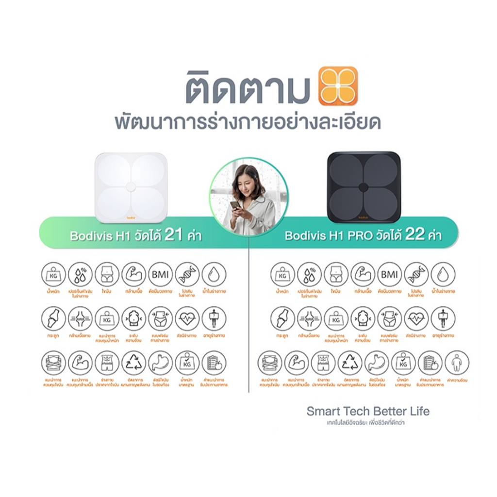 เครื่องชั่งน้ำหนัก Bodivis H1 / H1 Pro วัดไขมัน อัจฉริยะ พร้อมแอปภาษาไทย ตรวจสุขภาพ ของแท้ 100%