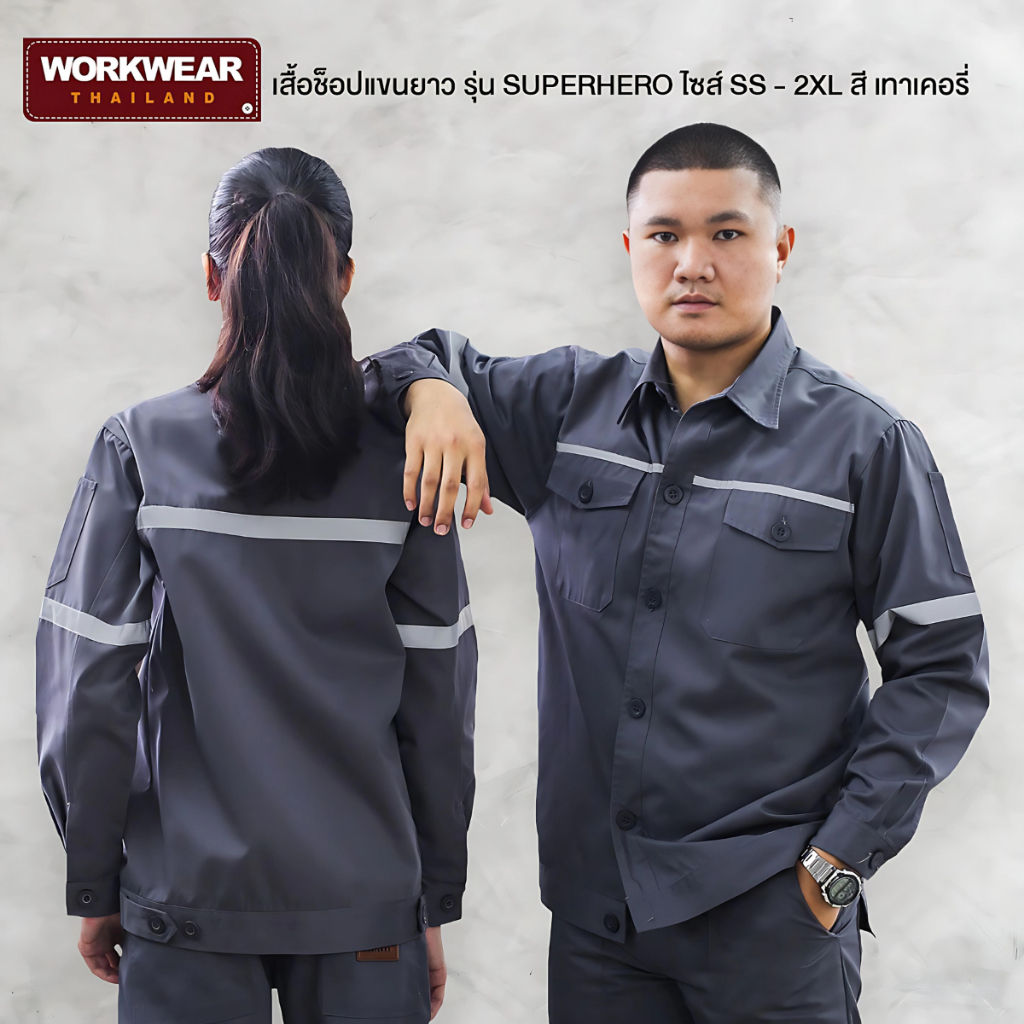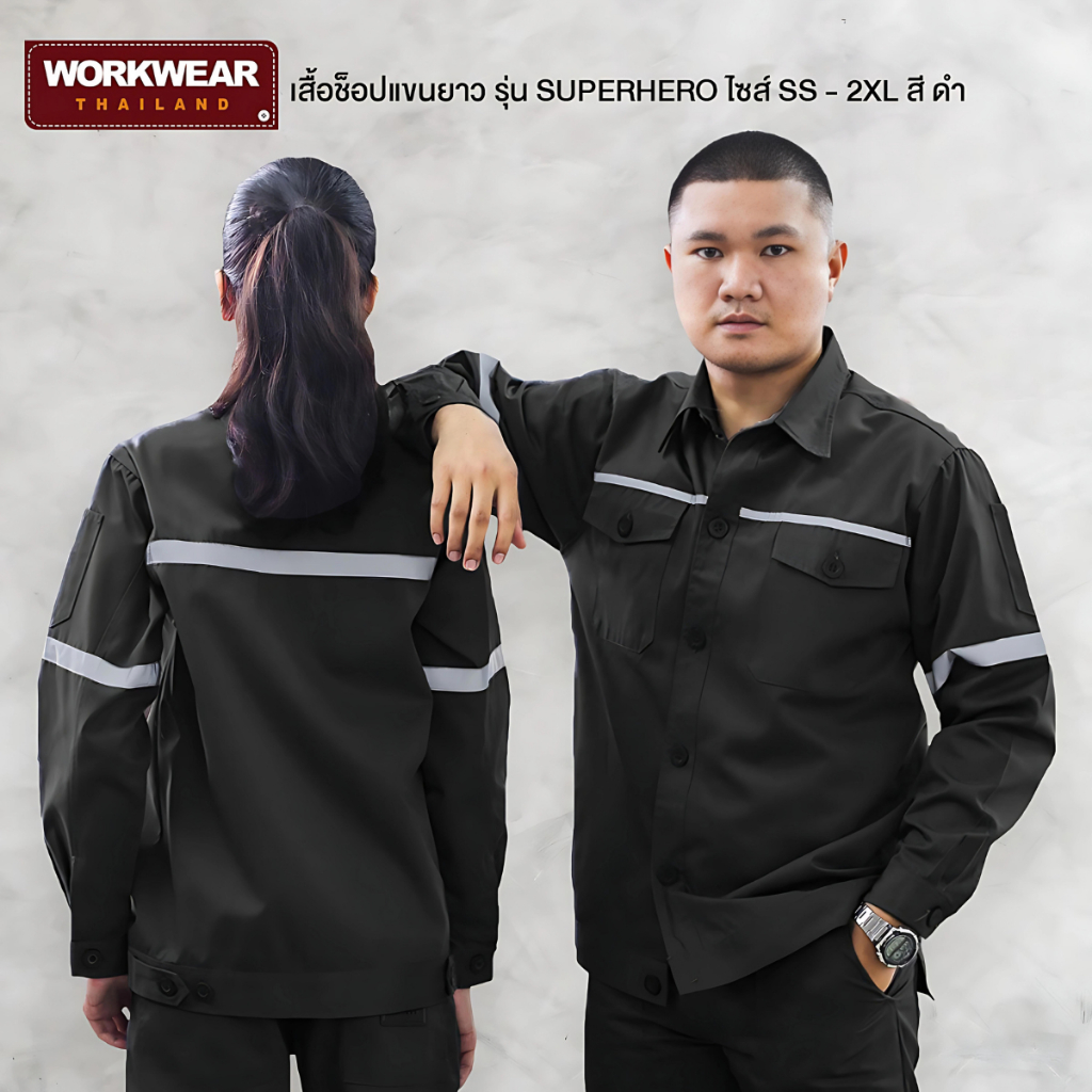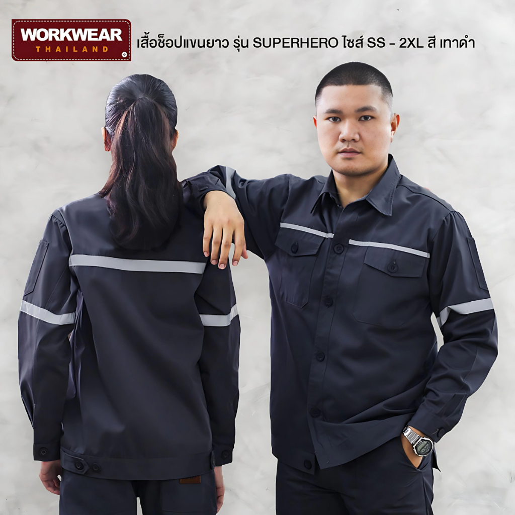 WORKWEAR THAILAND :เสื้อช็อปแขนยาว รุ่น Super Hero ติดแถบสะท้อนแสง เสื้อช็อปช่าง กู้ภัย ขนส่ง ทำงานโรงงาน