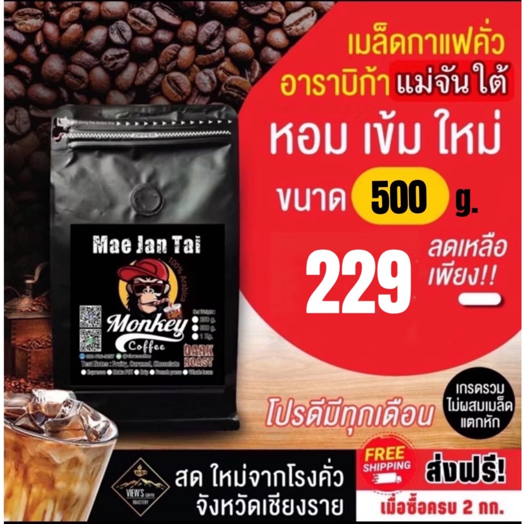 🔥แม่จันใต้ 🔥เกรดA กาแฟคั่ว หอม เข้ม ดีด สู้นม (Mae Jan Tai ) บรรจุแพคเกจเดิม📦
