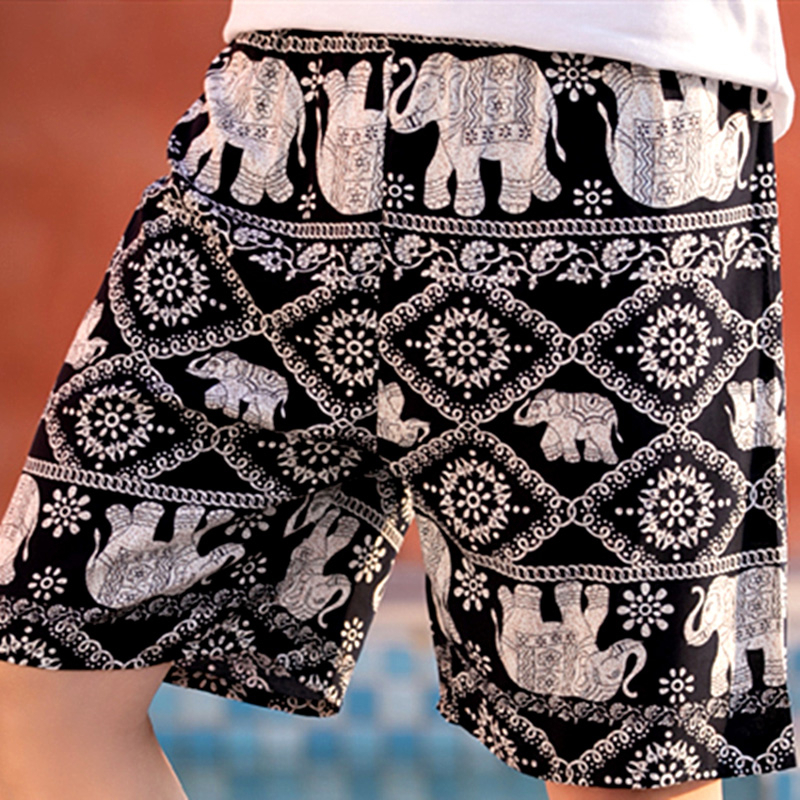 กางเกงขาสั้นผู้ชาย ความยาวเท่าเข่า ลายช้าง ผ้าสปัน เนื้อผ้านุ่มลื่นใส่สบาย เอวยางยืด