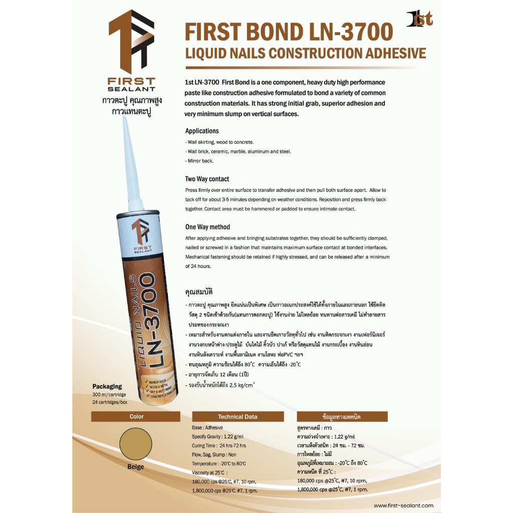 First Sealant รุ่น LN-3700 กาวตะปู กาวพลังตะปู ติดง่าย รับน้ำหนัก 2.5 kg/cm สีน้ำตาลไม้ ขนาด 300 ml