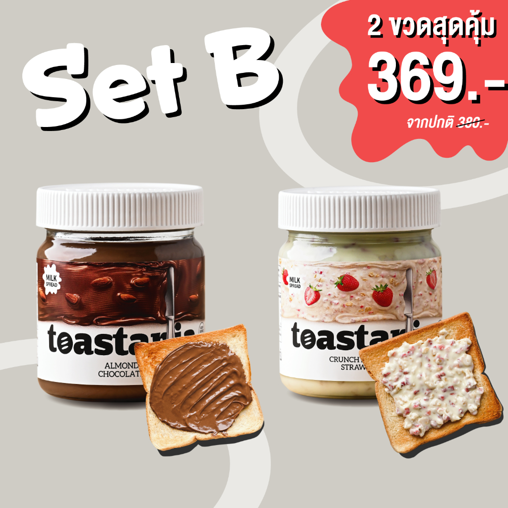 (แพ็คคู่คุ้มกว่า) Set B Toastaria Milk Spread Crunchy Granola สเปรดไม่เติมน้ำตาล 2 ขวด x 200g (โทสทาเรีย แยม ทาขนมปัง)