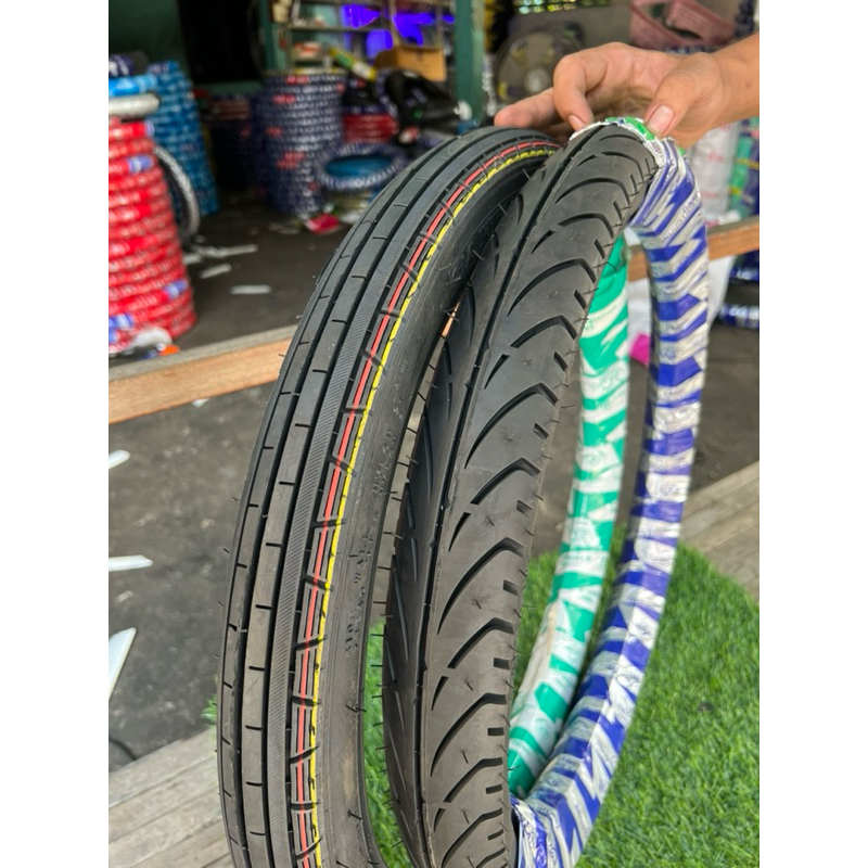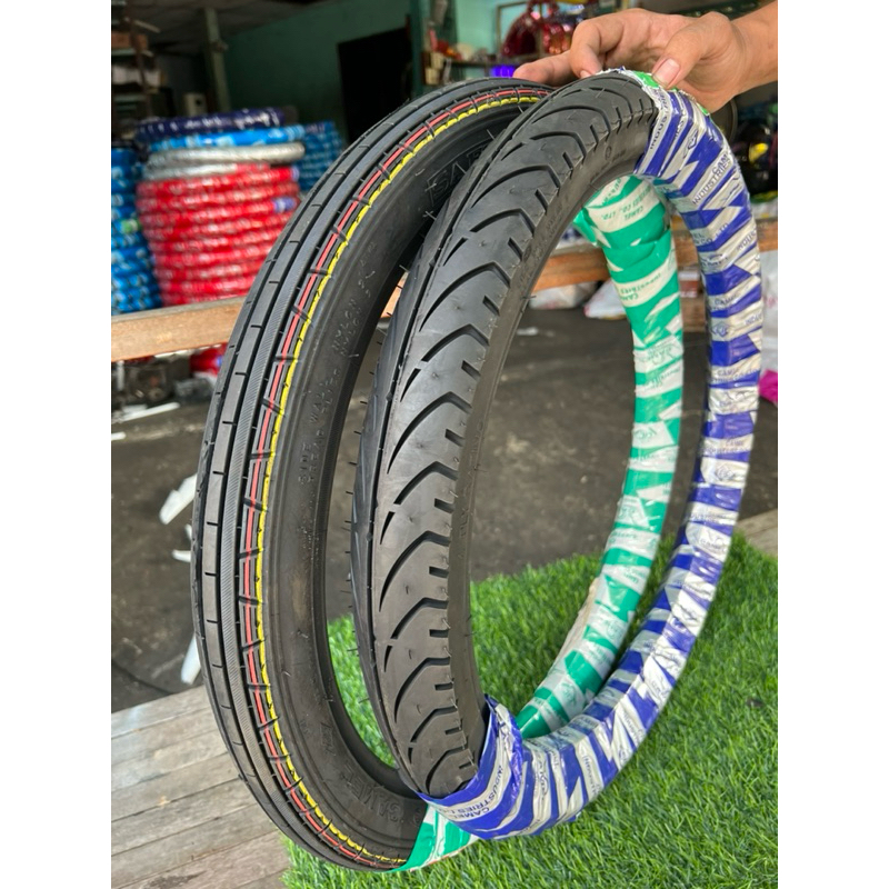 ชุดคู่ยางนอก คาเมล หน้าลายตรงหลังแบทแลค 60/100-17+70/90-17 & 60/90-17+70/90-17
