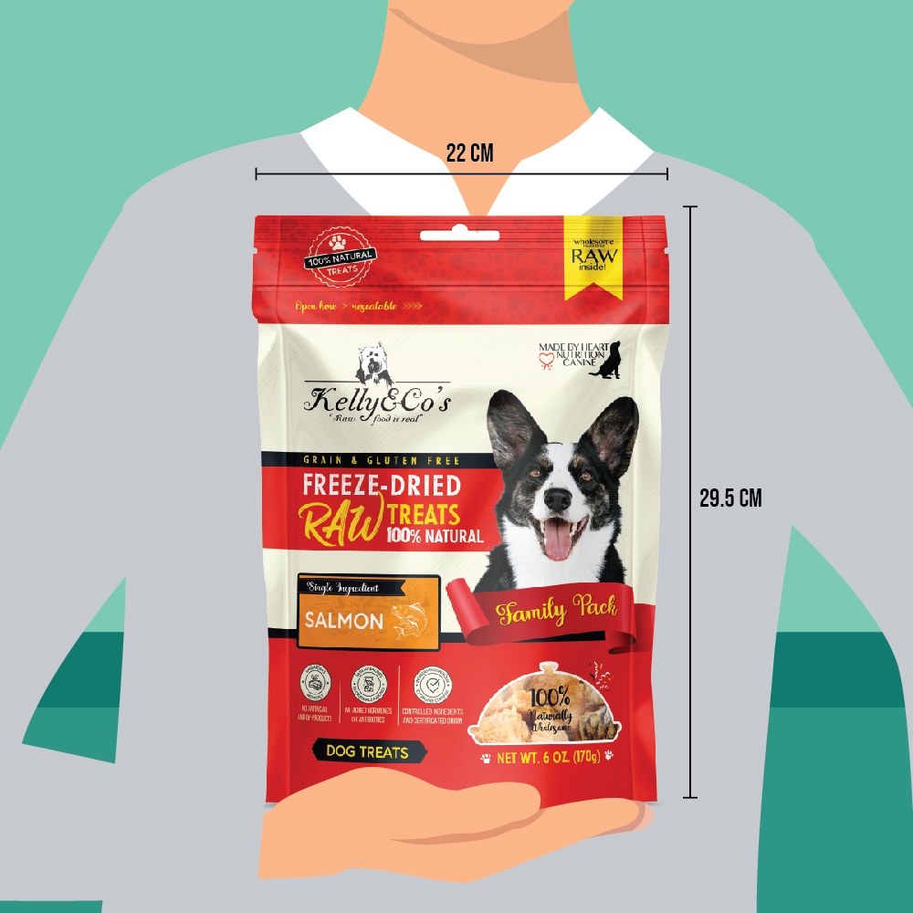 เคลลี่แอนด์โค ขนมสุนัข ขนมฟรีซดราย ปลาแซลมอน ขนาดแฟมิลี่ไซด์สุดคุ้มค่า (170g)