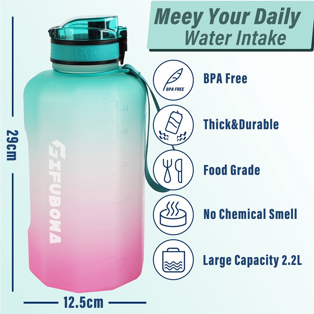 ขวดน้ํา GEMFUL 2.2 Litre เหยือกน้ํากีฬาขนาดใหญ่ BPA-free Leakproof สําหรับแคมป์ปิ้งกีฬากลางแจ้ง