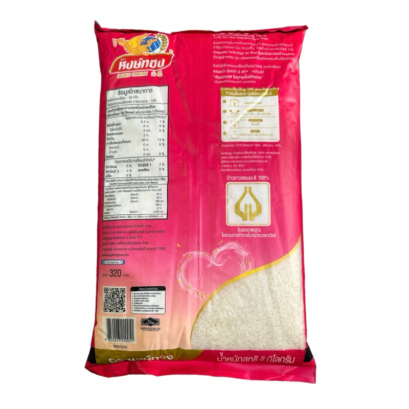 ข้าวหอมมะลิ 100% ตราหงษ์ทอง 5 กิโลกรัม หอม นุ่ม เต็มเมล็ด 🌾