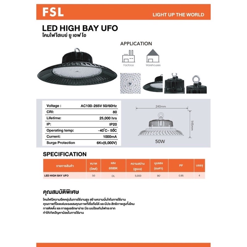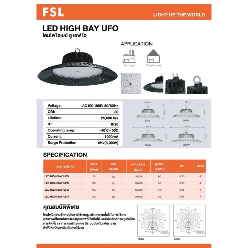 FSL โคมไฟไฮเบย์ LED 100w. 200w. (มอก.1995-2551) โคมไฟโรงงาน LED โคมไฟฝาชี LED หลอดไฟแสงจันทร์ LED High Bay UFO