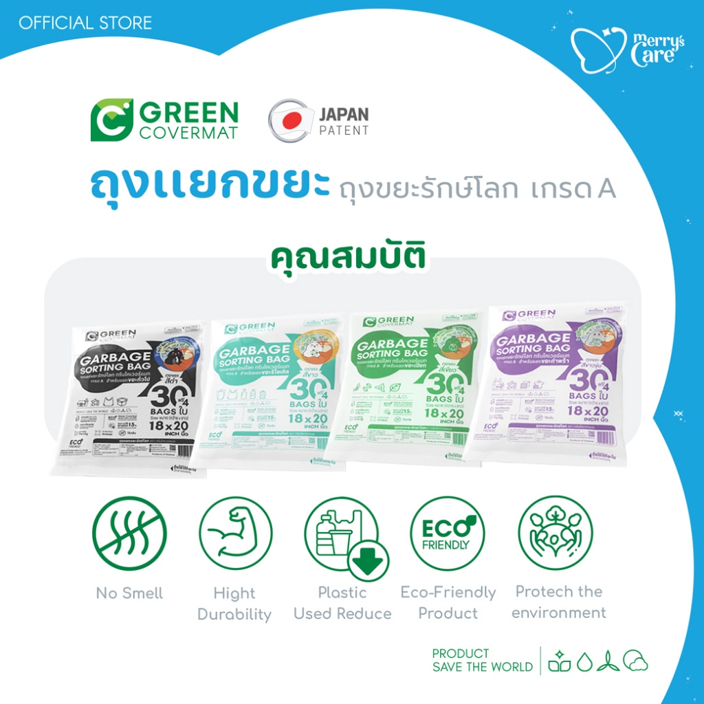 Greencovermat ถุงขยะ รักษ์โลก เเยกขยะ ขยะ เกรด A สีเขียว สำหรับ ขยะเปียก (Eco-Product)