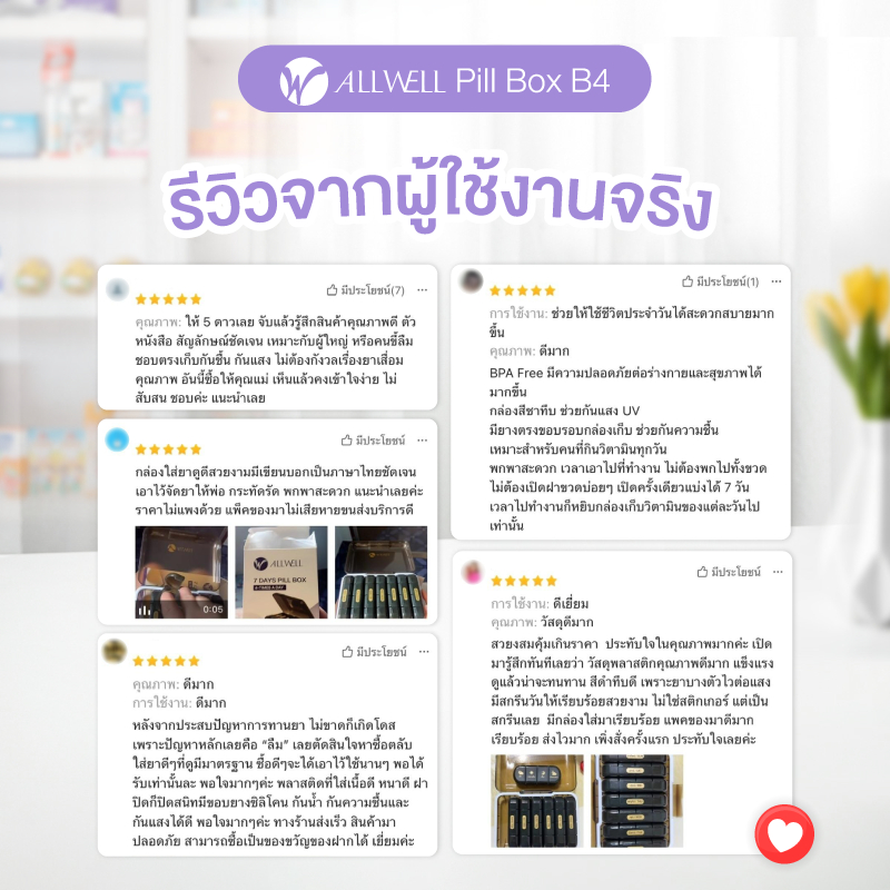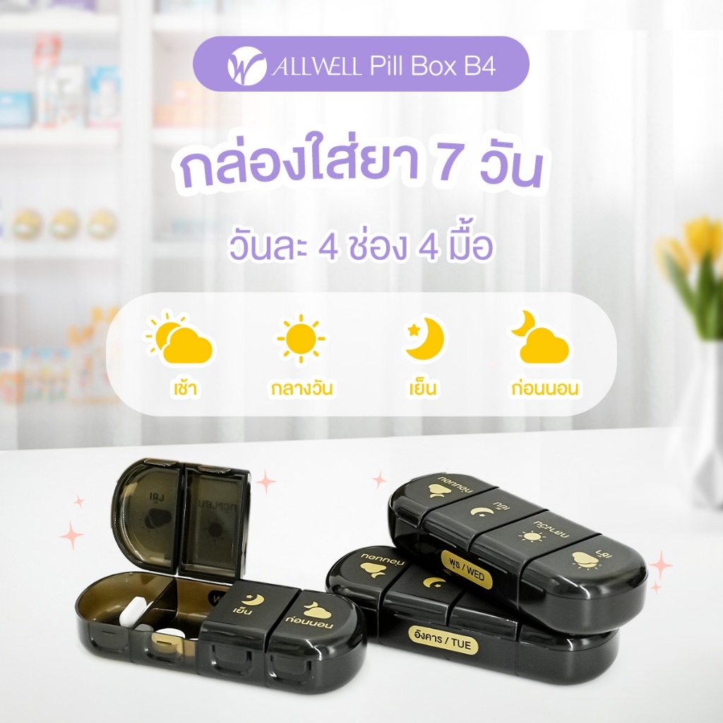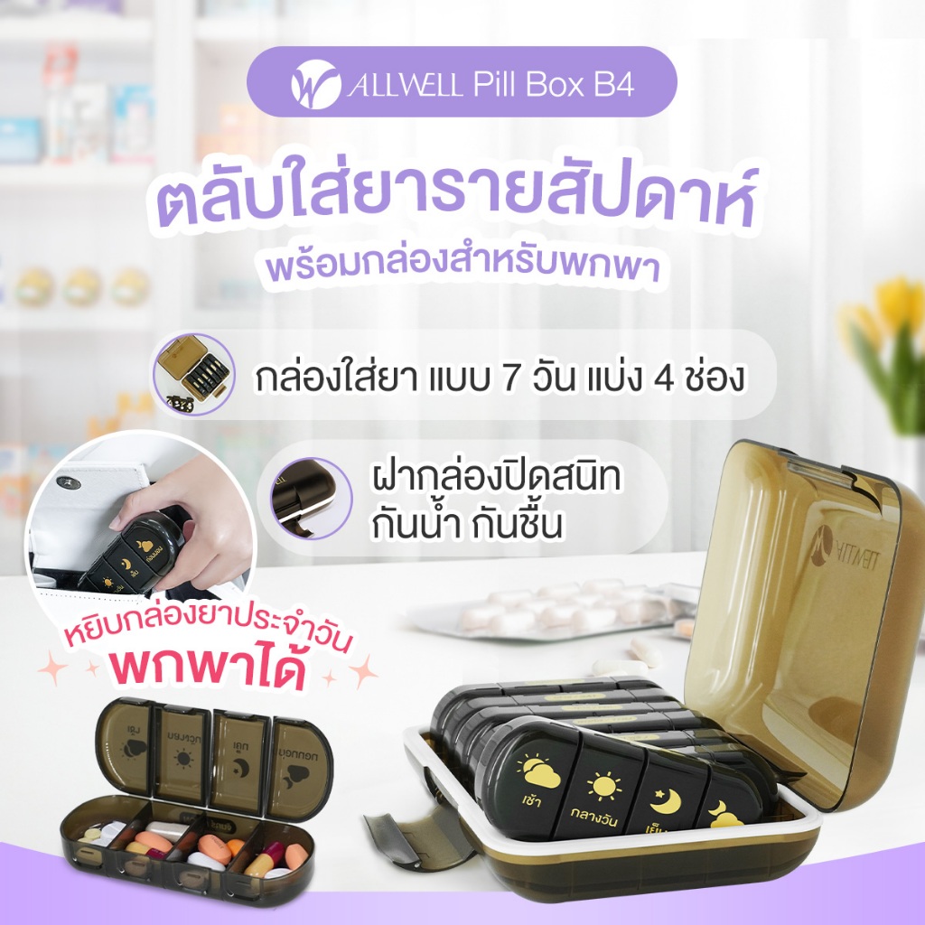 ALLWELL Pill Box B4 ตลับใส่ยารายสัปดาห์ พร้อมกล่องสำหรับพกพา กล่องเก็บยา กล่องยา กล่องยา 7 วัน กันน้ำ กันชื้น กันแสง