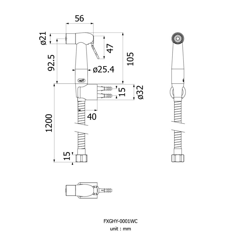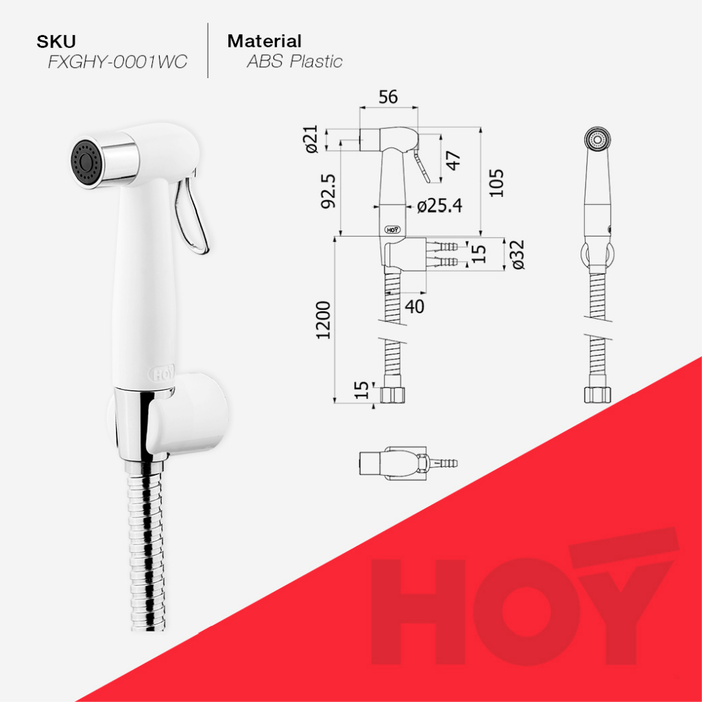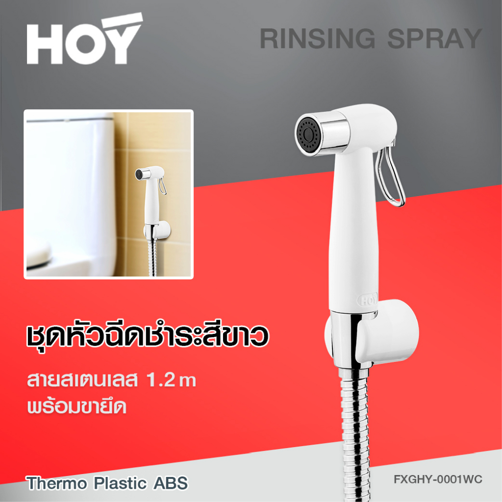 HOY ชุดหัวฉีดชำระ พลาสติกสีขาว สายสเตนเลส (ห่อแอร์) รหัส FXGHY-0001WC (Clearance Product)