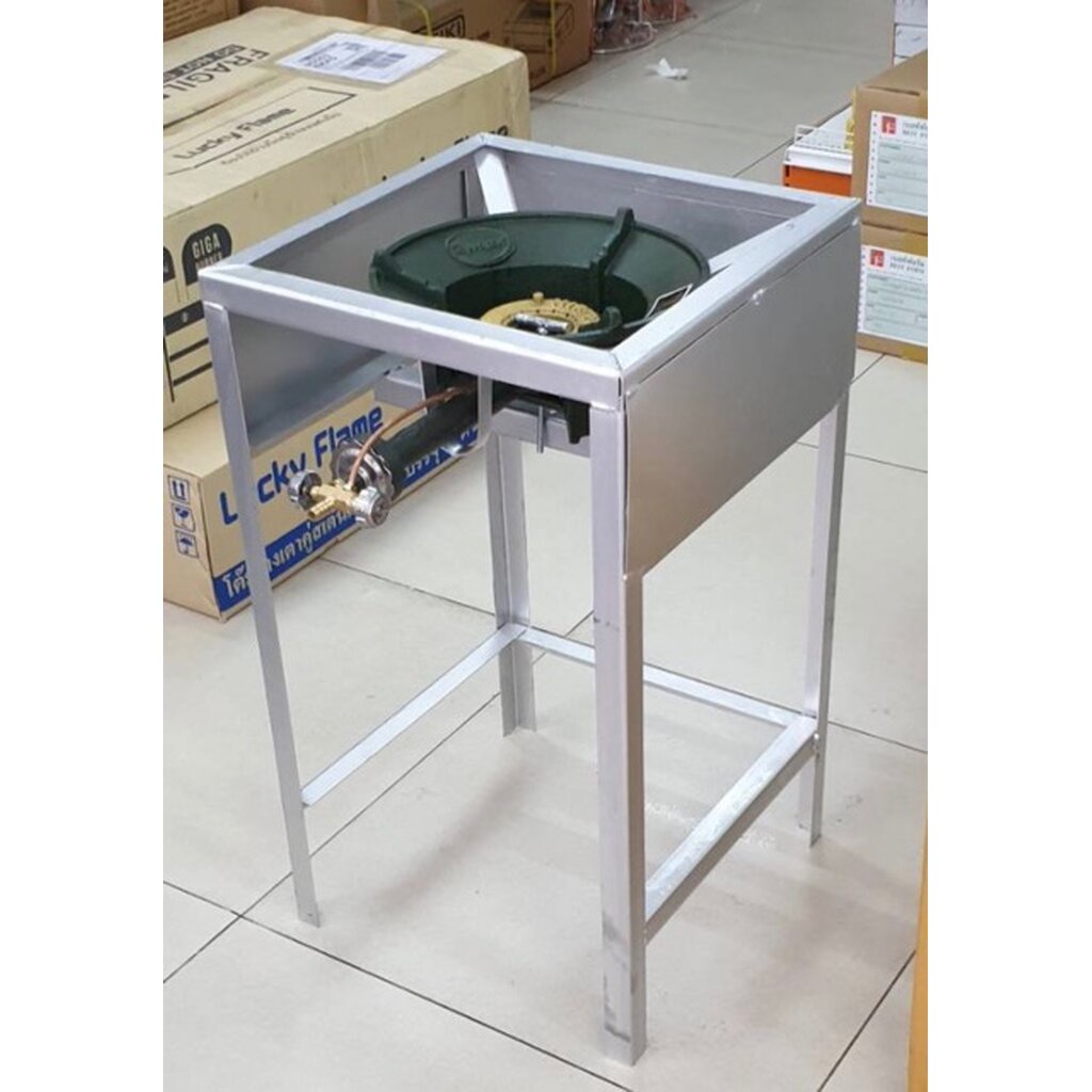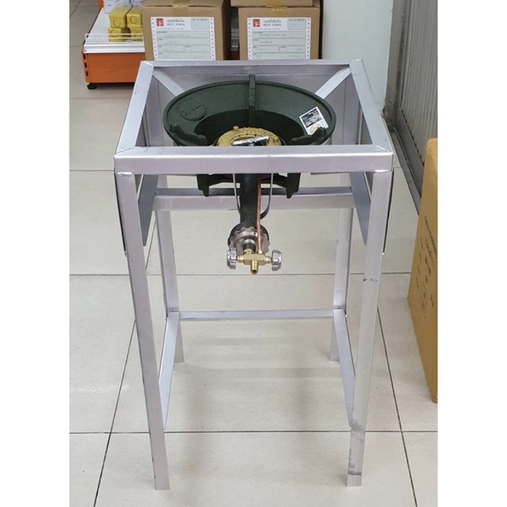 หัวเตาแม่ค้า หัวเร่ง KB5 รุ่น หนา ทน ทาน พร้อมขาเหลี่ยมสูง มีบังลมในตัว ขนาด กว้าง 40 x ยาว 40 x สูง 68 ซม.