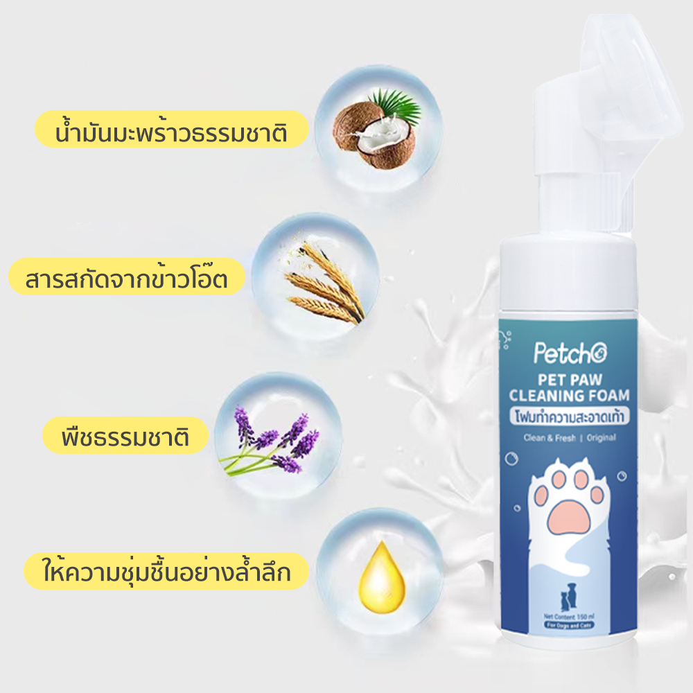 Petcho โฟมทำความสะอาดเท้าสัตว์เลี้ยง เช็ดเท้าแมว ล้างเท้าหมา Pet feet cleaner ทำความสะอาดอุ้งเท้า ดับกลิ่น 150ml