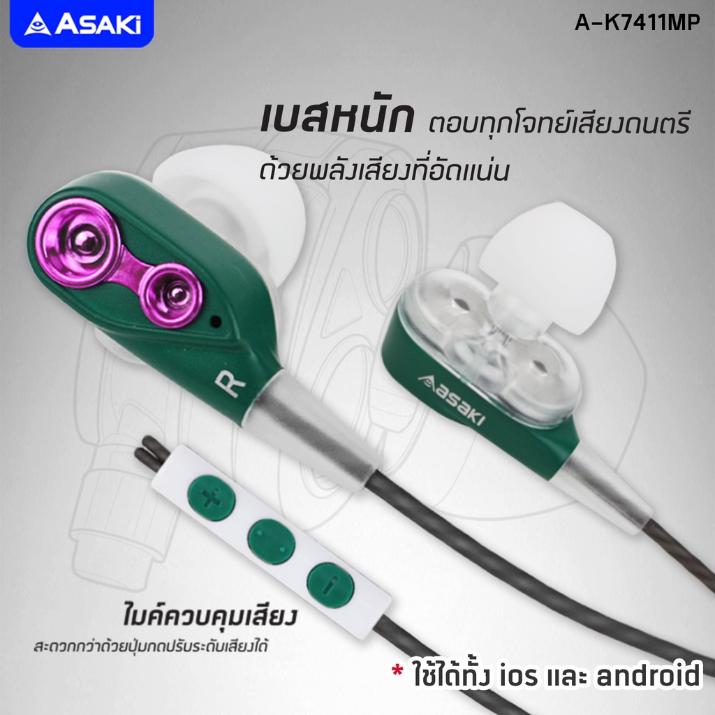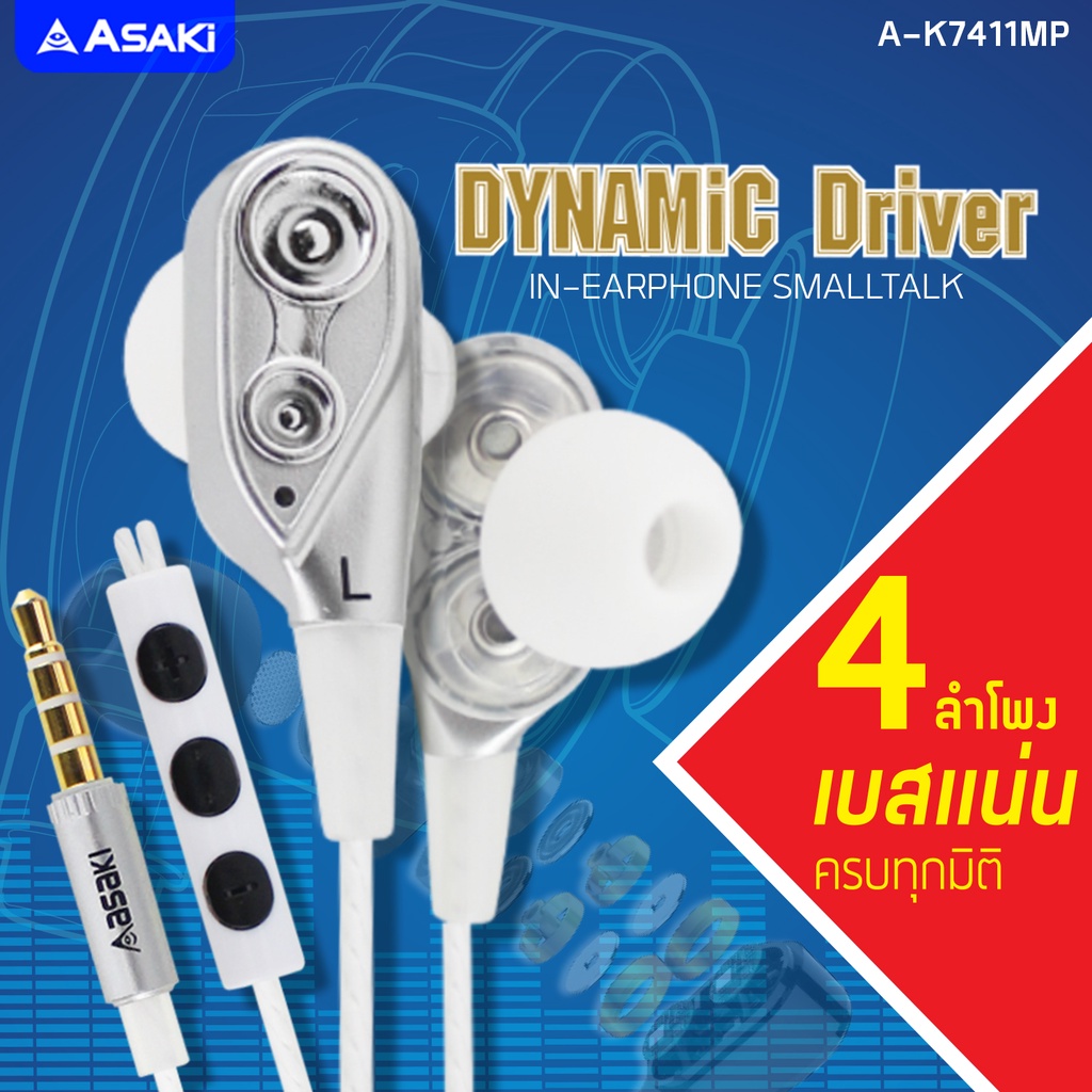 Asaki Smalltalk หูฟังอินเอียร์สมอลทอล์ค มีไมค์ในตัว เพิ่ม-ลดเสียง (คละสี) รุ่น A-K7411MP ของแท้ - รับประกัน1ปี