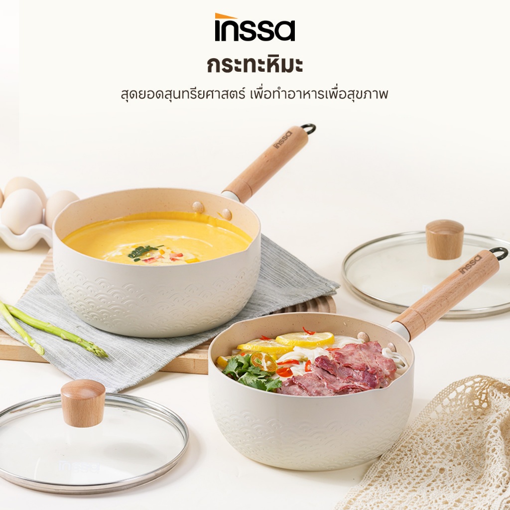 [รับประกัน 1 ปี]INSSA หม้อ Yukihira 18/20 ซม. ไม่ติด ปลอด PFOA/PFOS ใช้ได้ทุกเตา หม้อนม อาหารเด็ก ฝาแก้ว GUOJ020