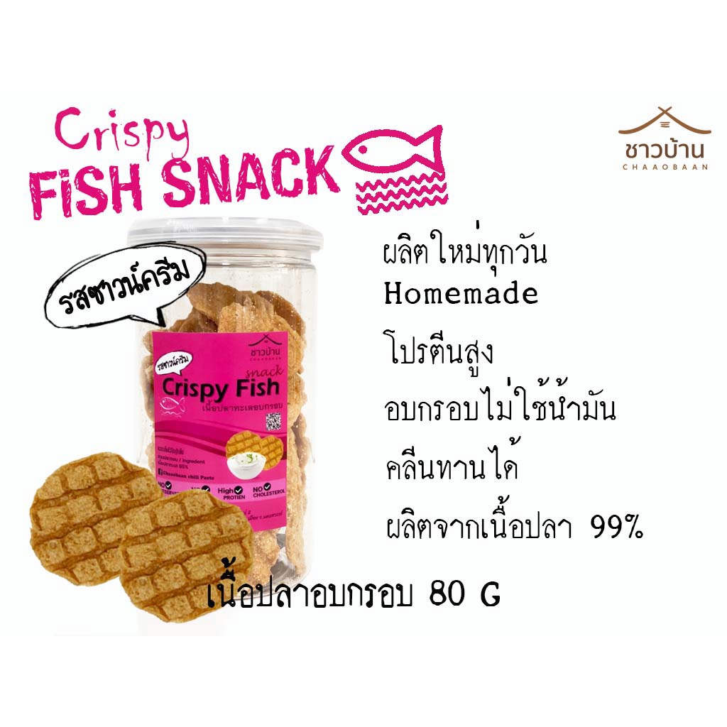 OTOP เนื้อปลาอบกรอบ ตราชาวบ้าน ขนาด 80 กรัม (crispy fish snack) #คลีน