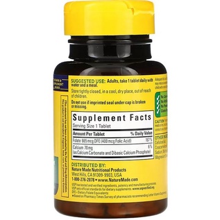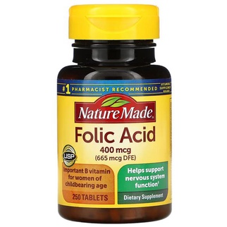 (พร้อมส่ง) Nature Made Folic Acid -- 400 mcg - 250 Tablets. วิตามินบี 9 กรดโฟลิก สร้างเม็ดเลือดแดง การแบ่งตัวของเซลล์