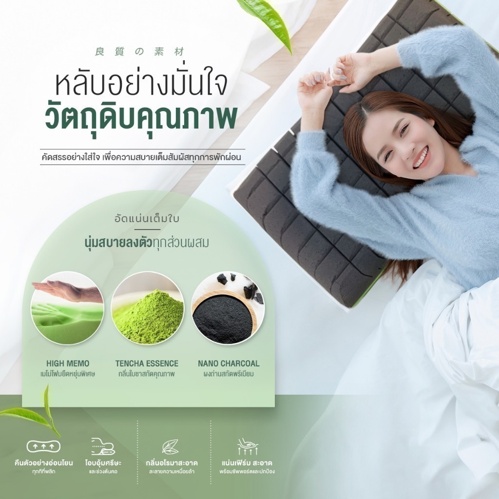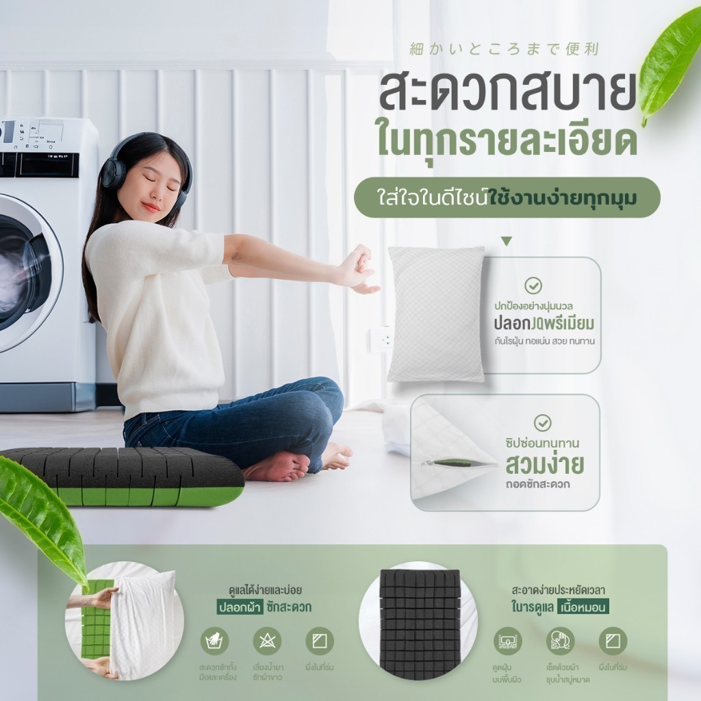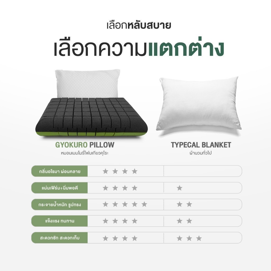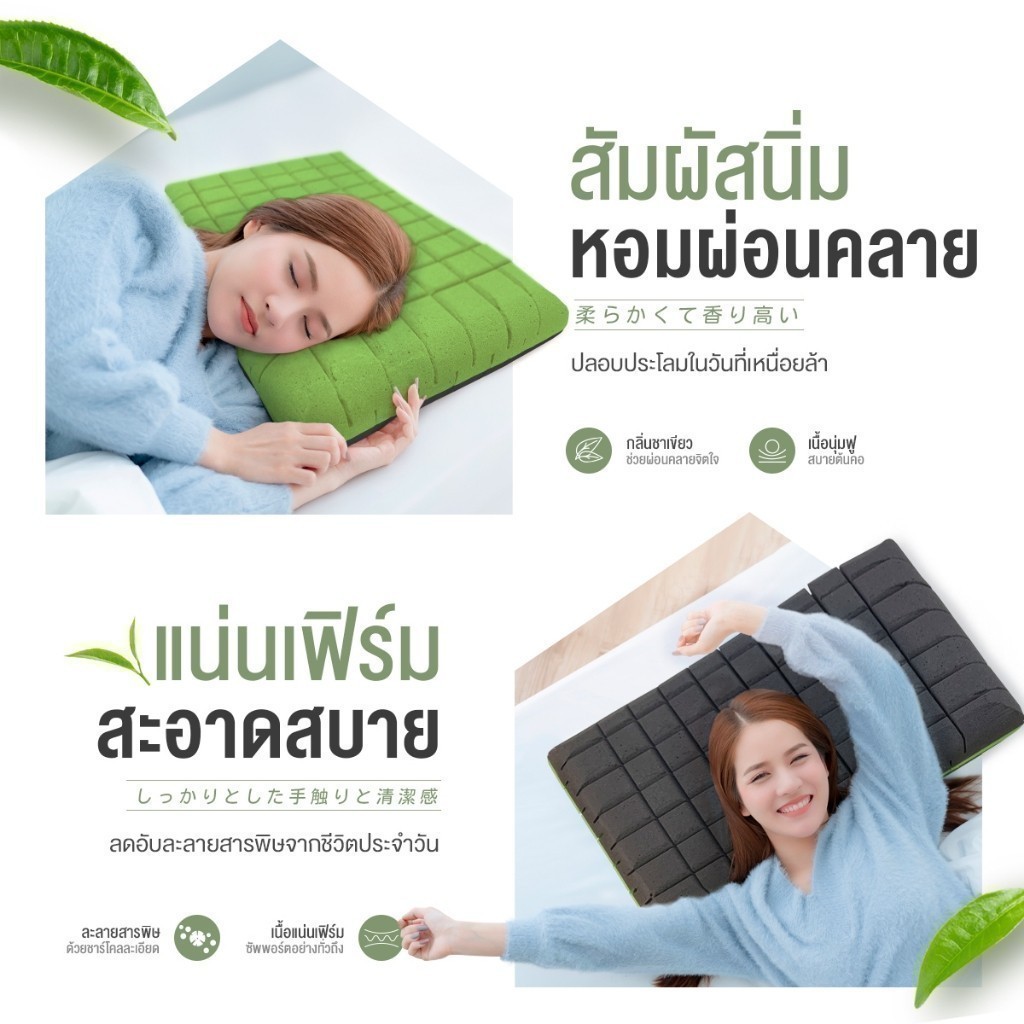 Orientas หมอนเต๋าสลบเหมือด Gyokuro หมอนเมมโมรี่โฟม เพื่อสุขภาพ ออกแบบ 2 โทน ส่วนผสม ชาเขียว ชาร์โคล
