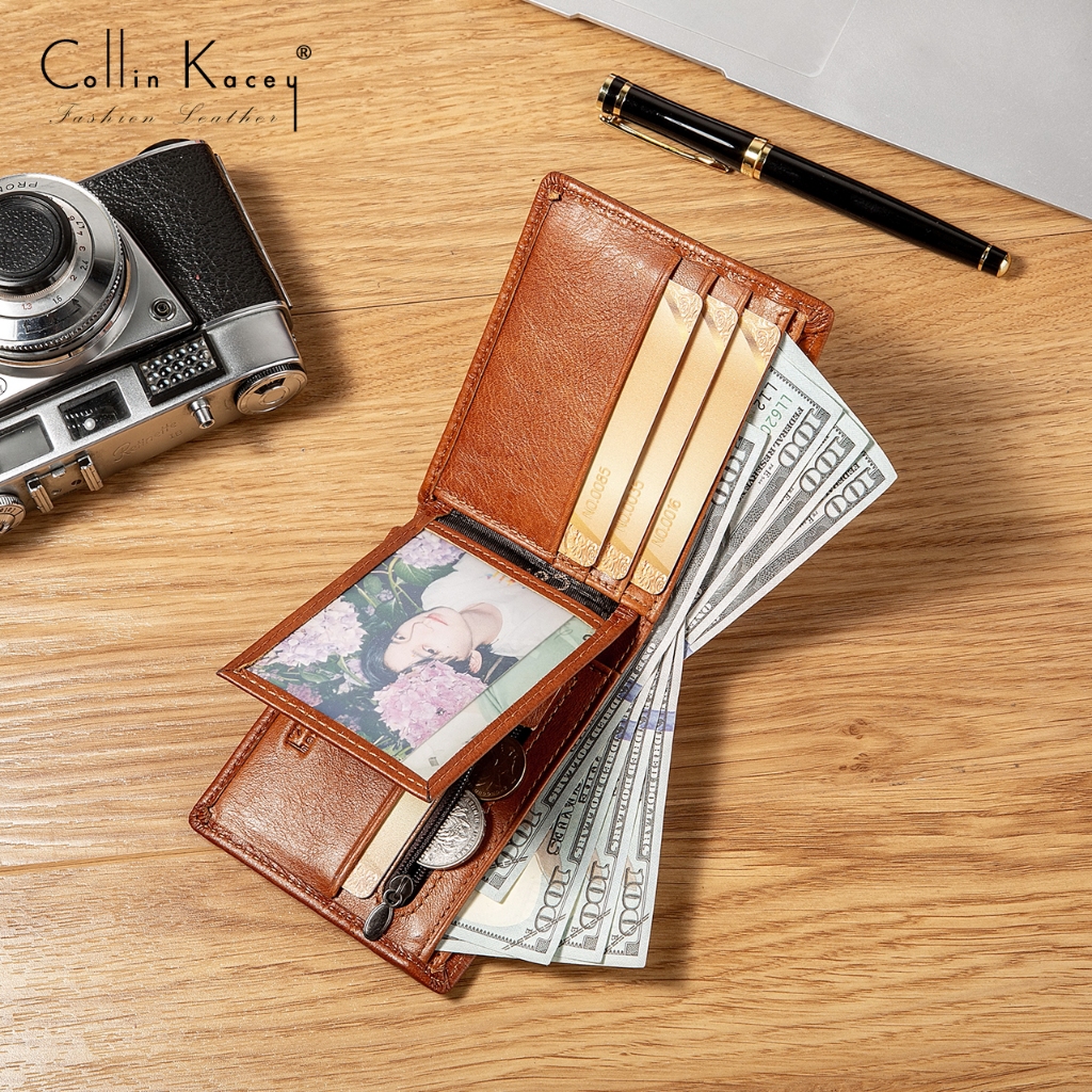 Collin Kacey A28 กระเป๋าสตางค์แฟชั่นใหม่ กระเป๋าสตางค์ผู้ชายหนังแท้ใบสั้น Genuine leather wallet
