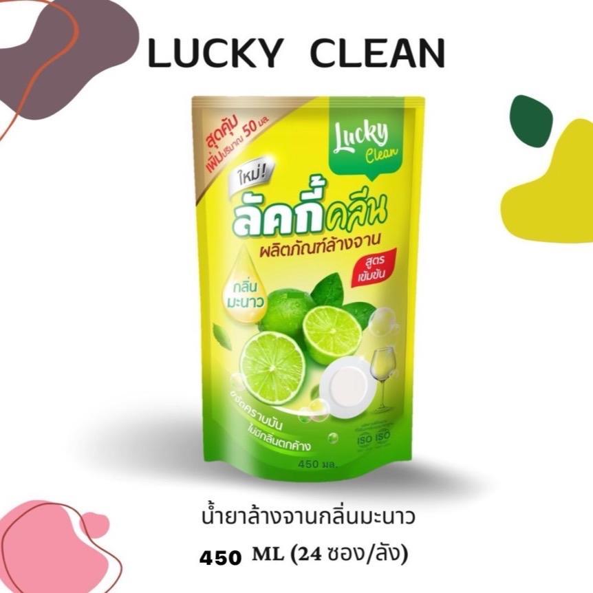 ( 1 ลัง x 12 ถุง) ขนาด 450 ml. ลัคกี้คลีน น้ำยาล้างจาน สูตรเข้มข้น ขจัดครบไขมันหมดจด กลิ่นไม่ติด