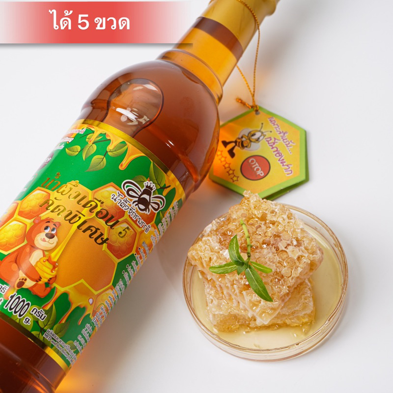 น้ำผึ้งเดือน 5 จักรพรรดิ จากเกสรดอกไม้ป่า ชุด 5 ขวด (สินค้า OTOP)
