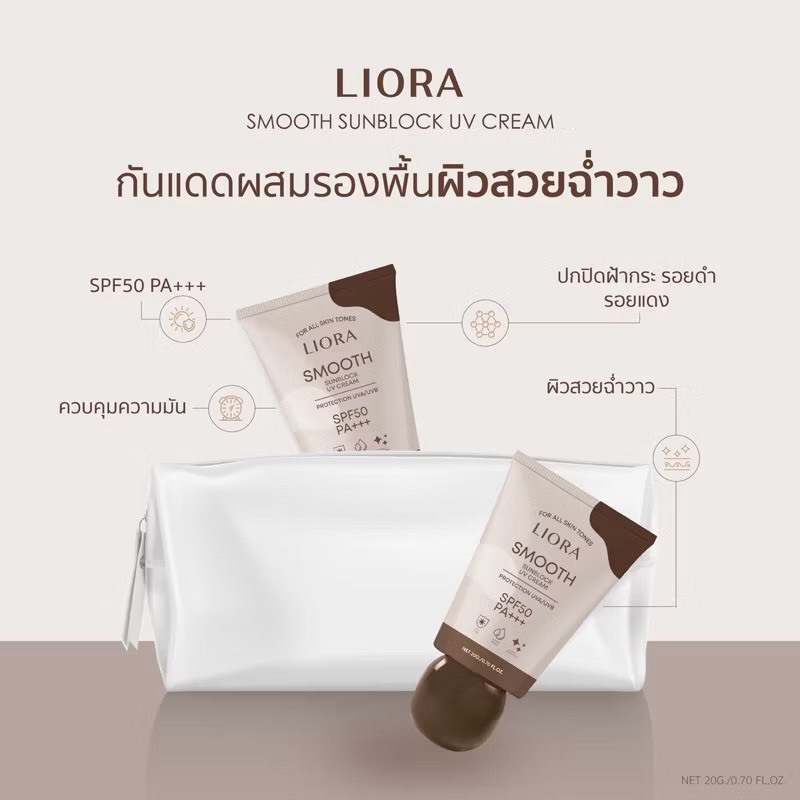 ครีมกันแดดลิโอล่า (แพคเกจใหม่) Liora smooth sunblock spf50pa++ 20g