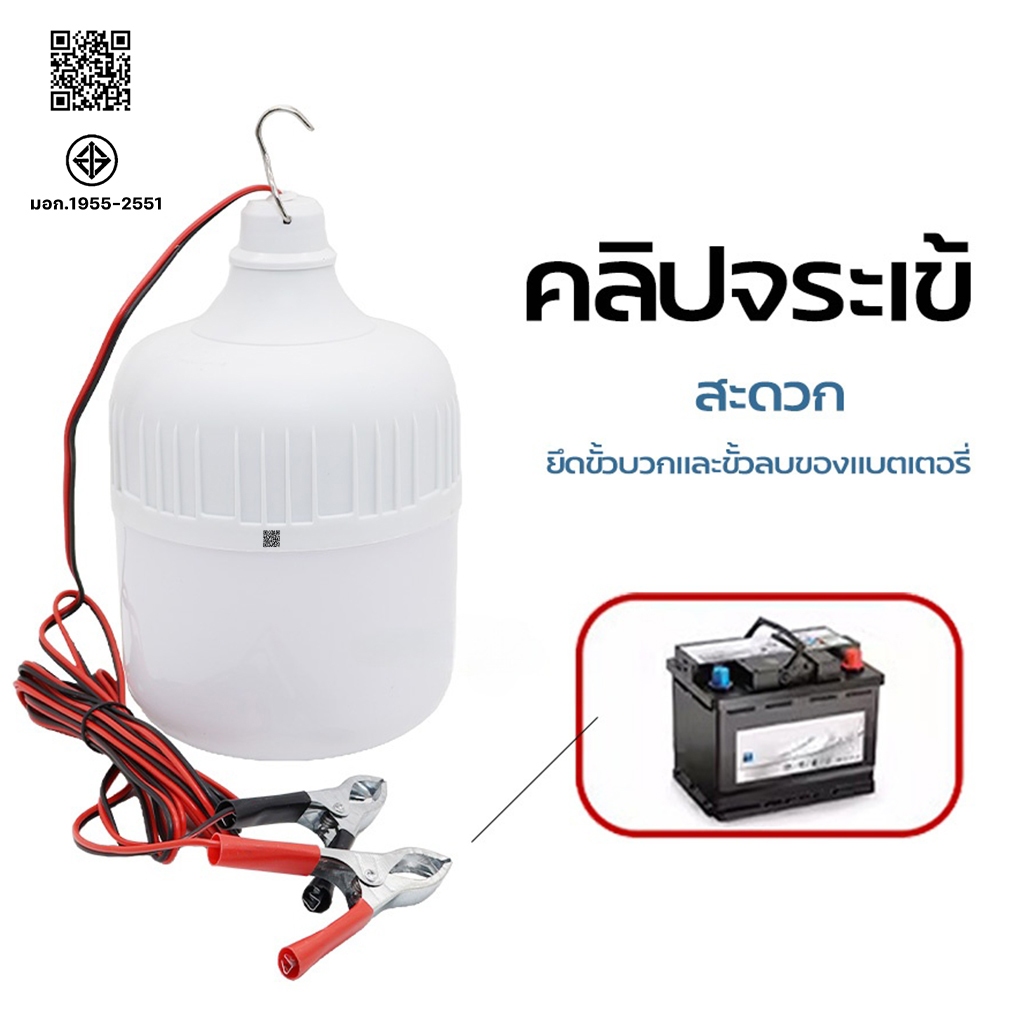 หลอดไฟคีบแบต LED 40W 85W หลอดไฟพกพา หลอดไฟฉุกเฉิน แสงขาว มีกิ๊บต่อแบตเตอรี่ในตัว DC12V หลอดทรงกระบอกคีบแบต LED