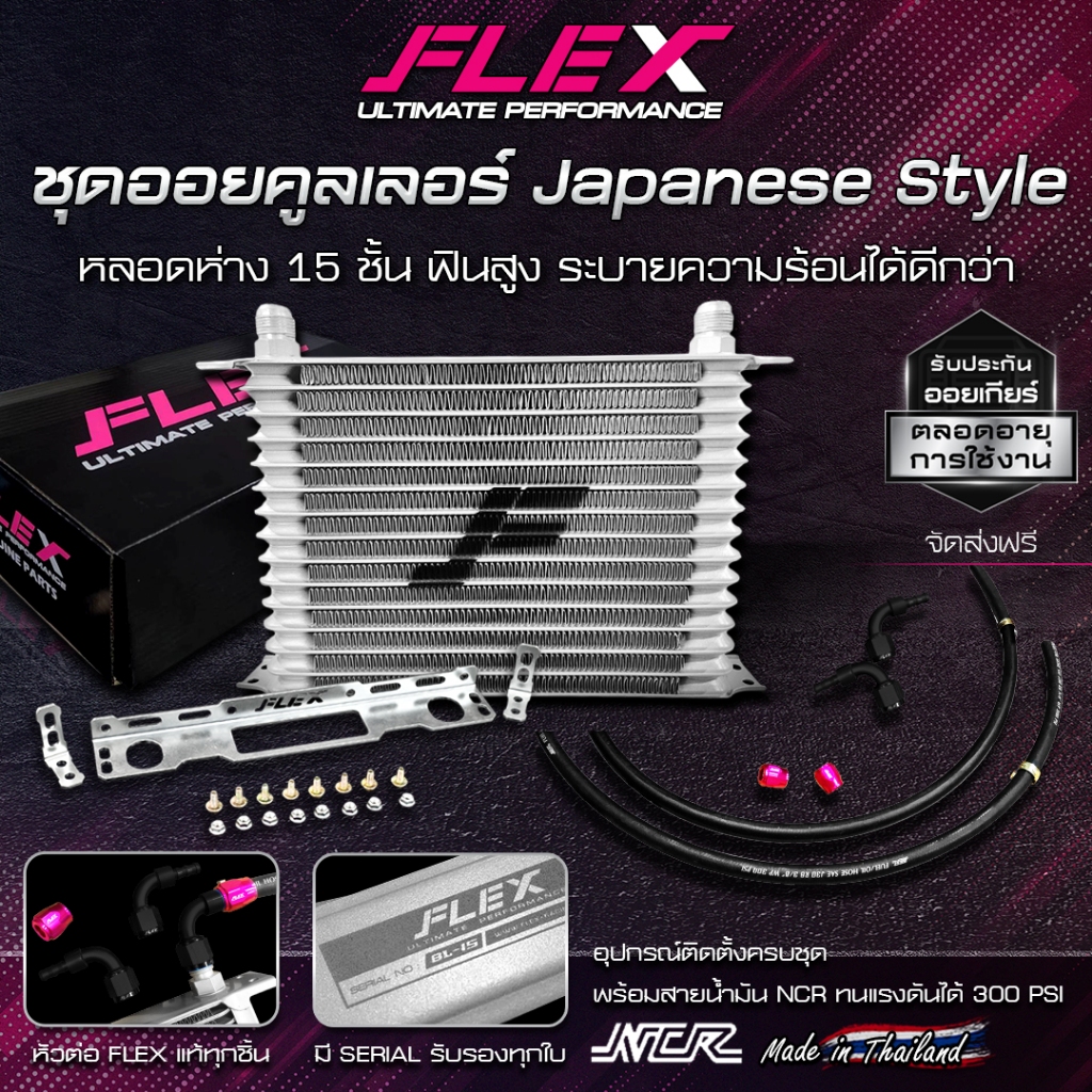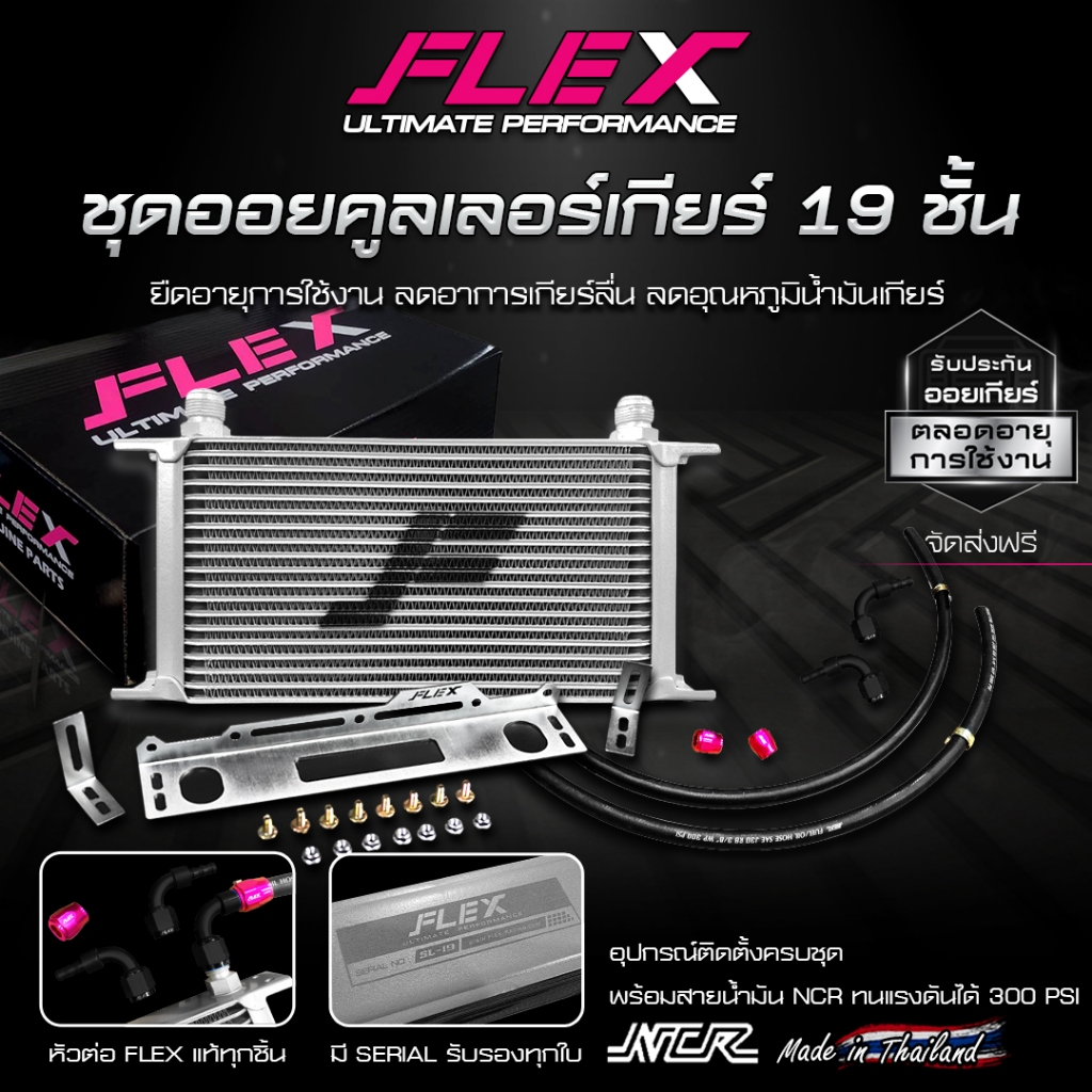 ออยเกียร์ ออยคูลเลอร์ FLEX 13 15 16 19 ชั้น สีเงิน รับประกันน้ำมันรั่ว ซึม ตลอดอายุการใช้งาน oilcooler, ชุดพัดลม