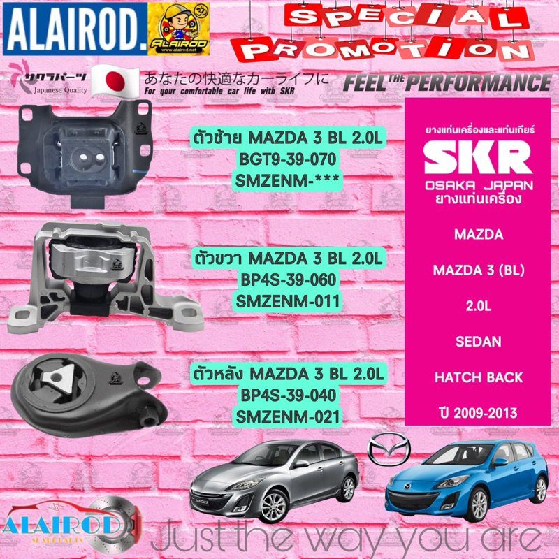 ยางแท่นเครื่อง MAZDA 3 (BL) SEDAN,HATCH BACK / 1.6L,2.0L ปี 2009-2013 แบรนด์ SKR สินค้านำเข้าจากประเทศ JAPAN mazda3
