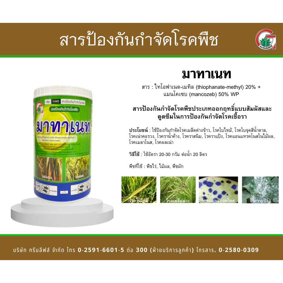 มาทาเนท 1กก. แมนโคเซบ (mancozeb) + ไทโอฟาเนต-เมทิล (thiophanate-methyl) 50% + 20% WP