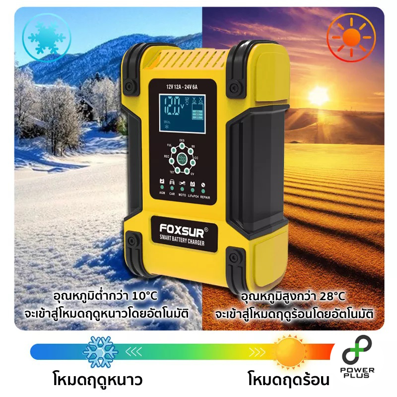 [รับประกัน 1ปี] FOXSUR ของแท้ 100% 122412D เครื่องชาร์จแบตเตอรี่ 12V 24V ที่ชาร์จแบตรถยนต์ ฟื้นฟูแบต