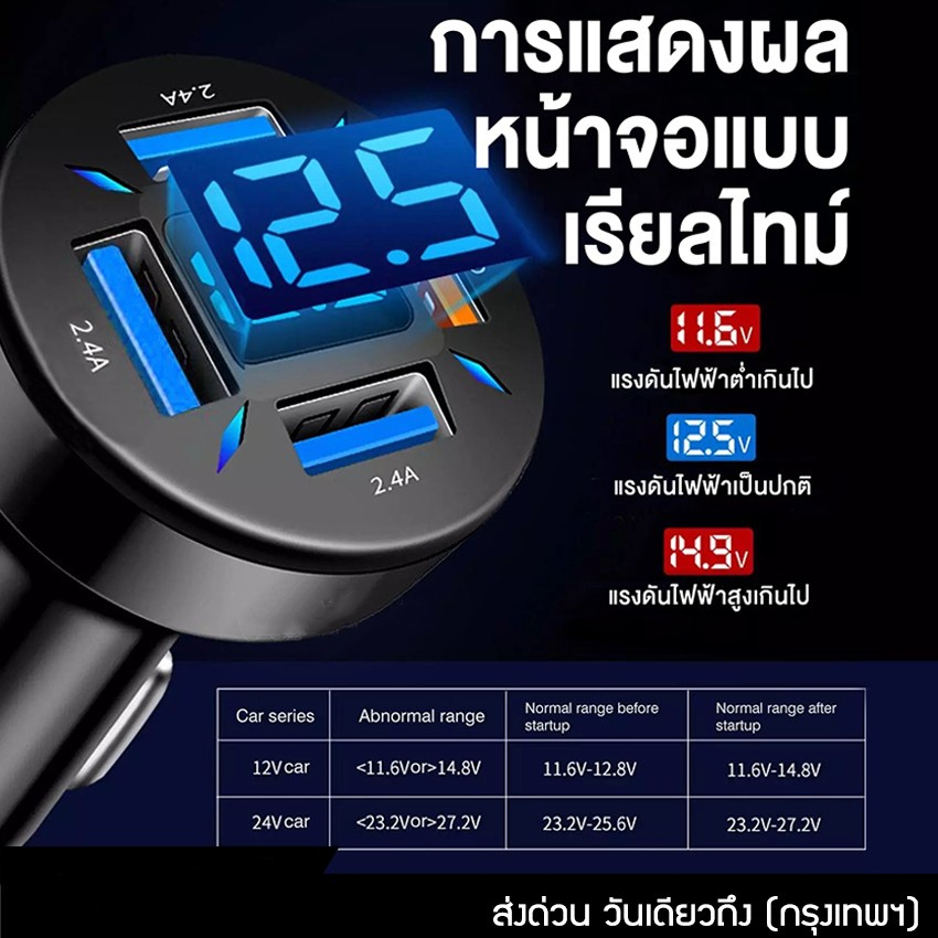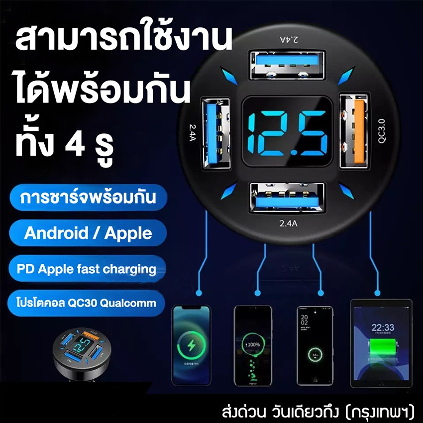 GOOJODOQ ที่ชาร์จในรถ ที่ชาร์จเสียบที่จุดบุหรี่ อะแดปเตอร์ 12V-24V 4พอร์ต QC3.0 USB Quick charger PD