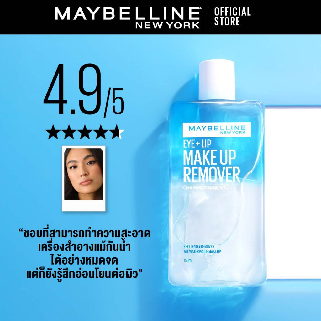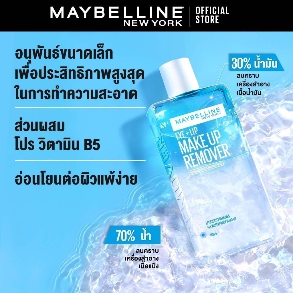 MAYBELLINE EYE & LIP MAKEUP REMOVER 70 ML เมย์เบลลีน อาย & ลิป เมคอัพ รีมูฟเวอร์ 70 มล. (เช็ดเครื่องสำอาง, รีมูฟเวอร์)