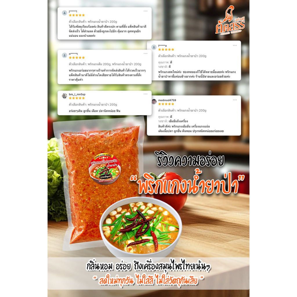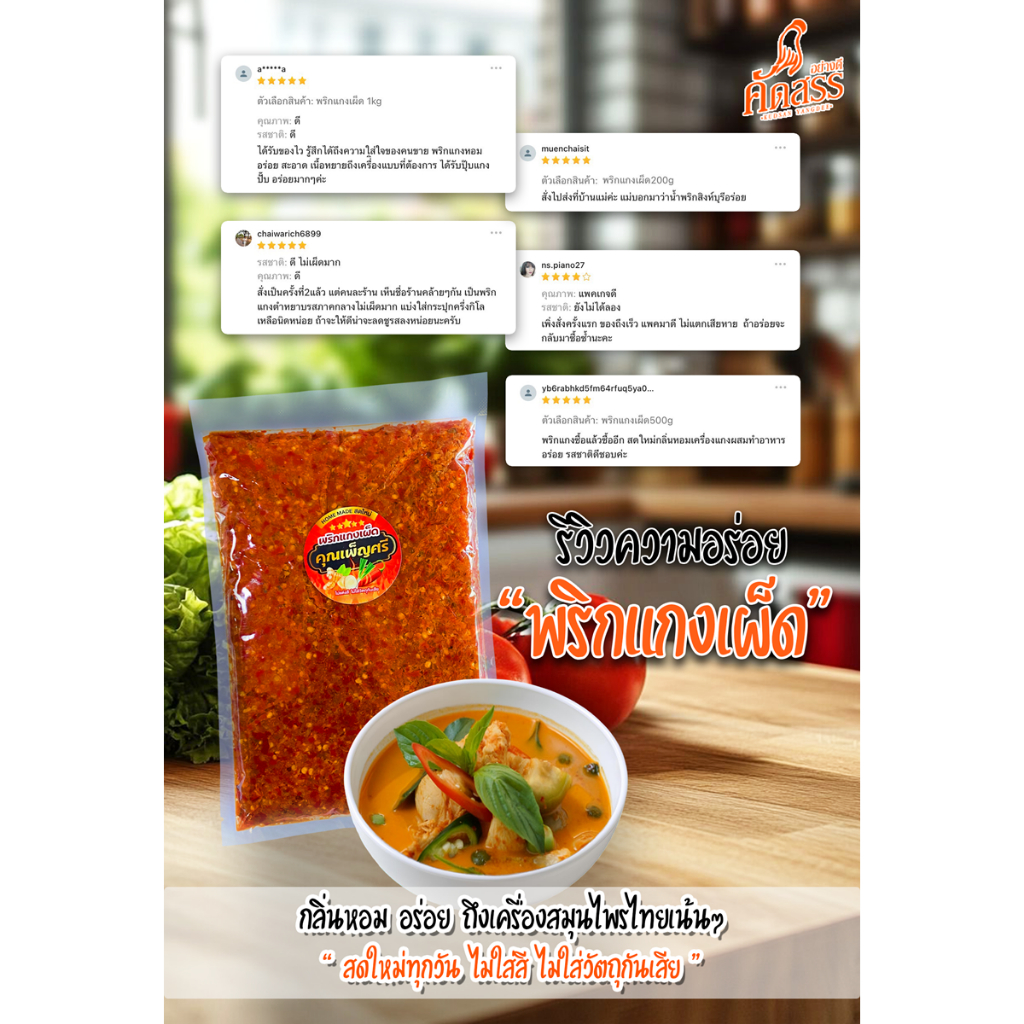 พริกแกงคุณเพ็ญศรี 7 ชนิด ขนาดทดลอง แพ็คละ 200 กรัม