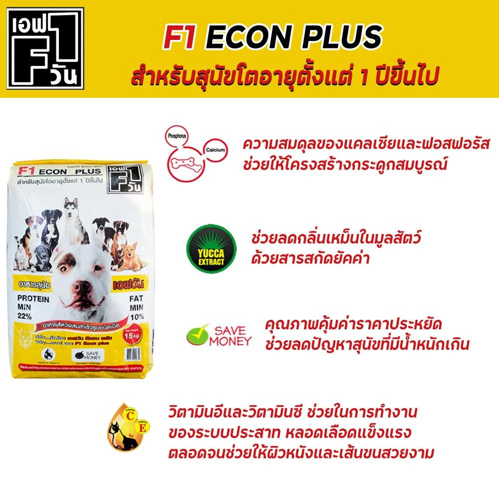 F1 Dog Food เอฟวัน อาหารเม็ดสำหรับสุนัขโตทุกสายพันธุ์ คุณภาพดี รวม 3 สูตร ขนาด 15kg.