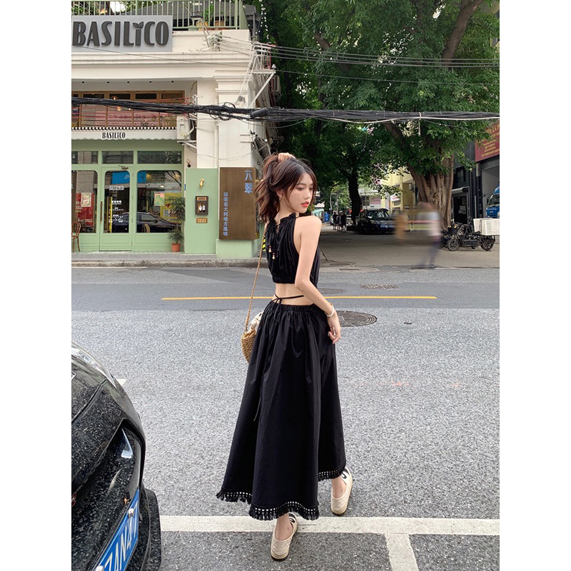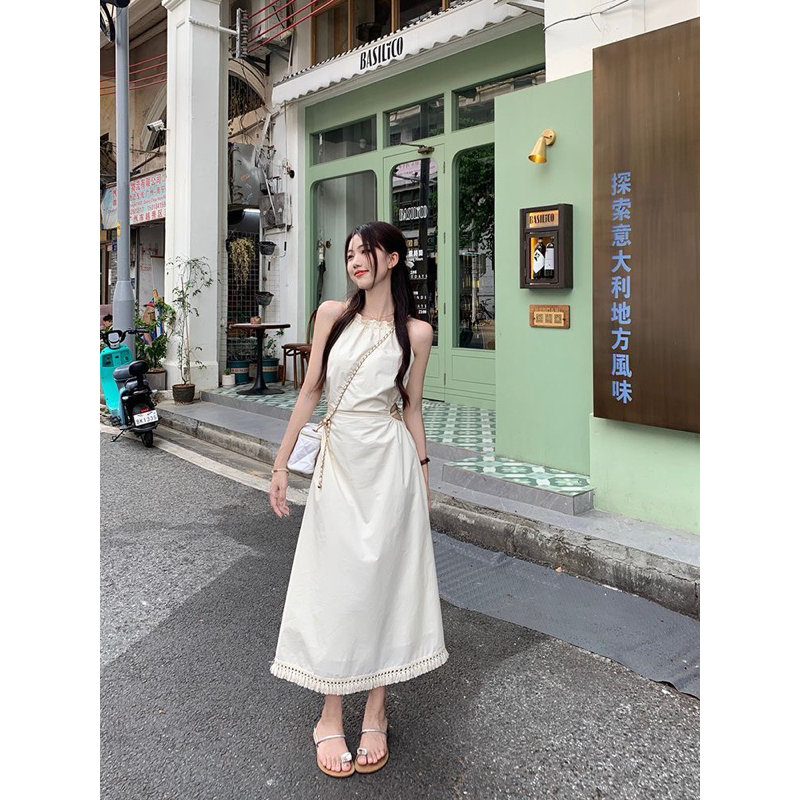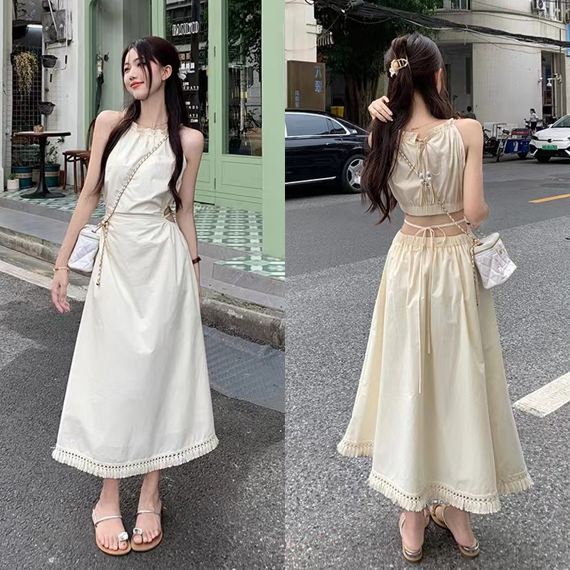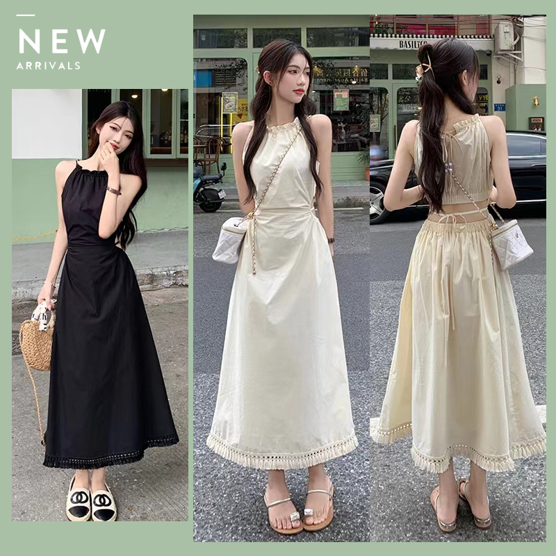 Gjcute ชุดเดรสยาว แขนกุด ประดับพู่ เหมาะกับเดินชายหาด แฟชั่นฤดูร้อน สําหรับสตรี WTD
