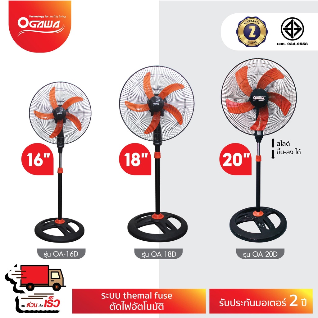 [พร้อมจัดส่ง] OGAWA พัดลมอุตสาหกรรมสไลด์ฐานกลม 16/18/20 นิ้ว