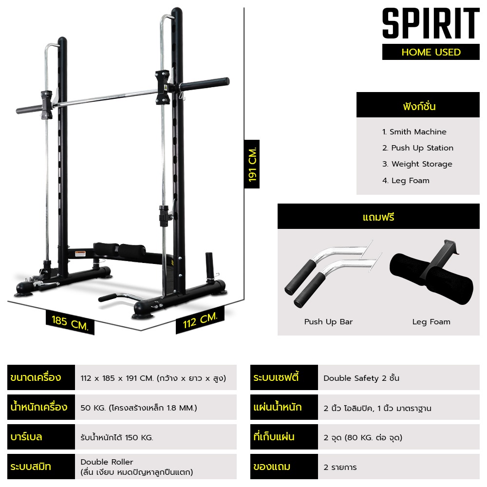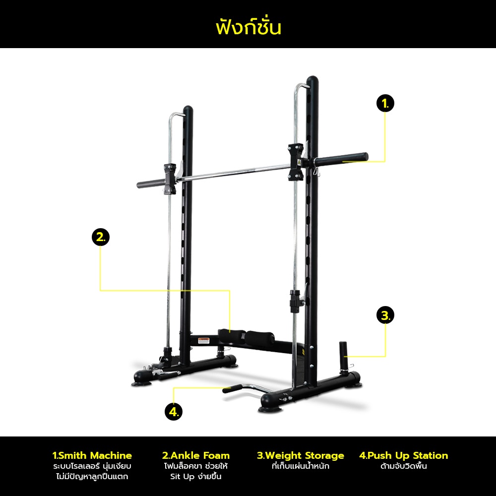 Power Reform Smith Machine ระบบ Double Roller รุ่น Spirit เป็นทั้ง Smith Machine,Push Up Station และ Weight Storageในตัว